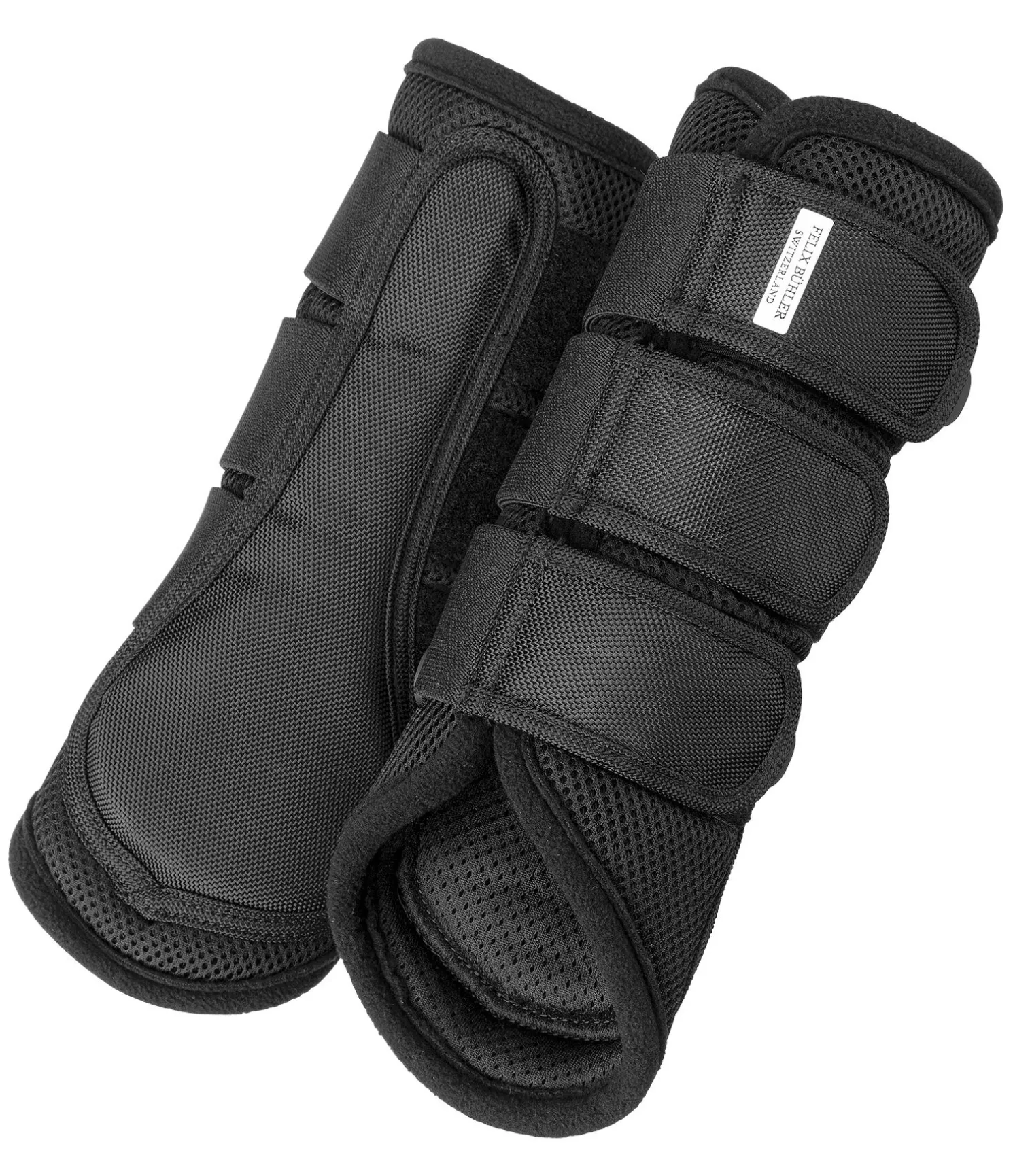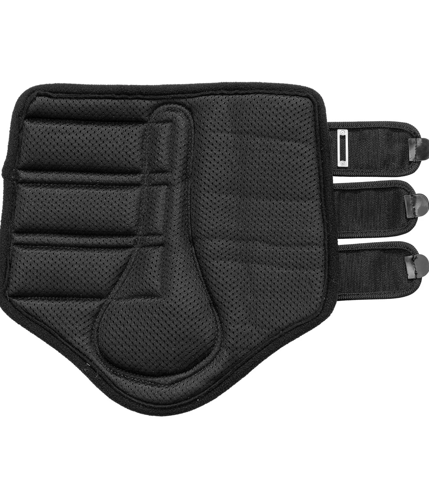 Guêtres souples pour postérieurs. Mesh extrêmement respirant permettant une circulation optimale de l’air. Pattes auto-agrippante élastiquées pour un ajustement parfait. Petit plaque métallique avec logo. Renfort sur la face intérieure pour une protection supplémentaire contre les chocs. Bordure en polaire pour éviter les frottements. 100 % polyester. Vendues par paires.