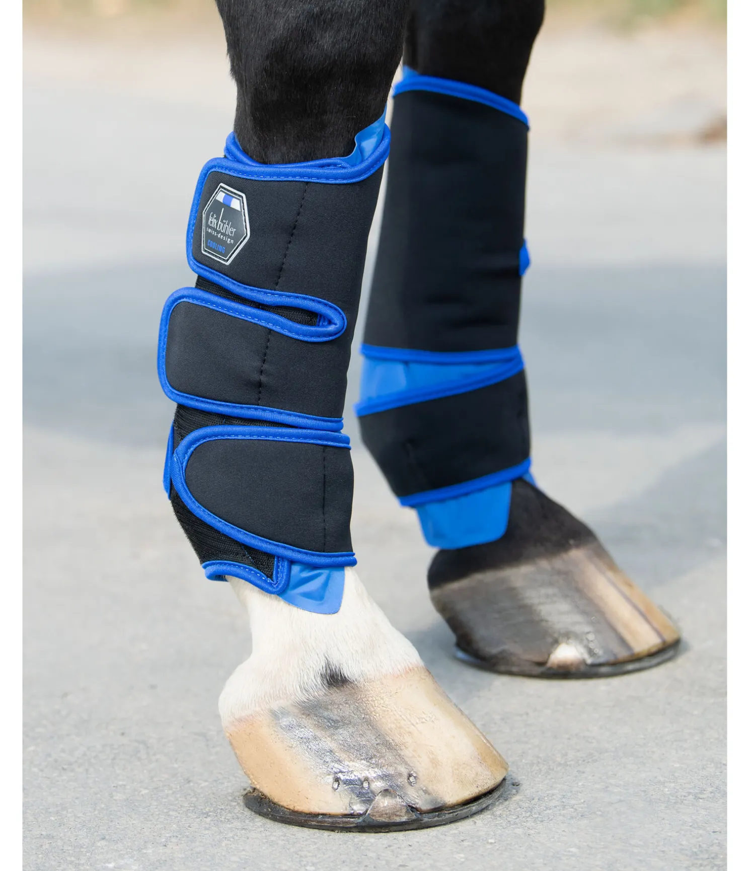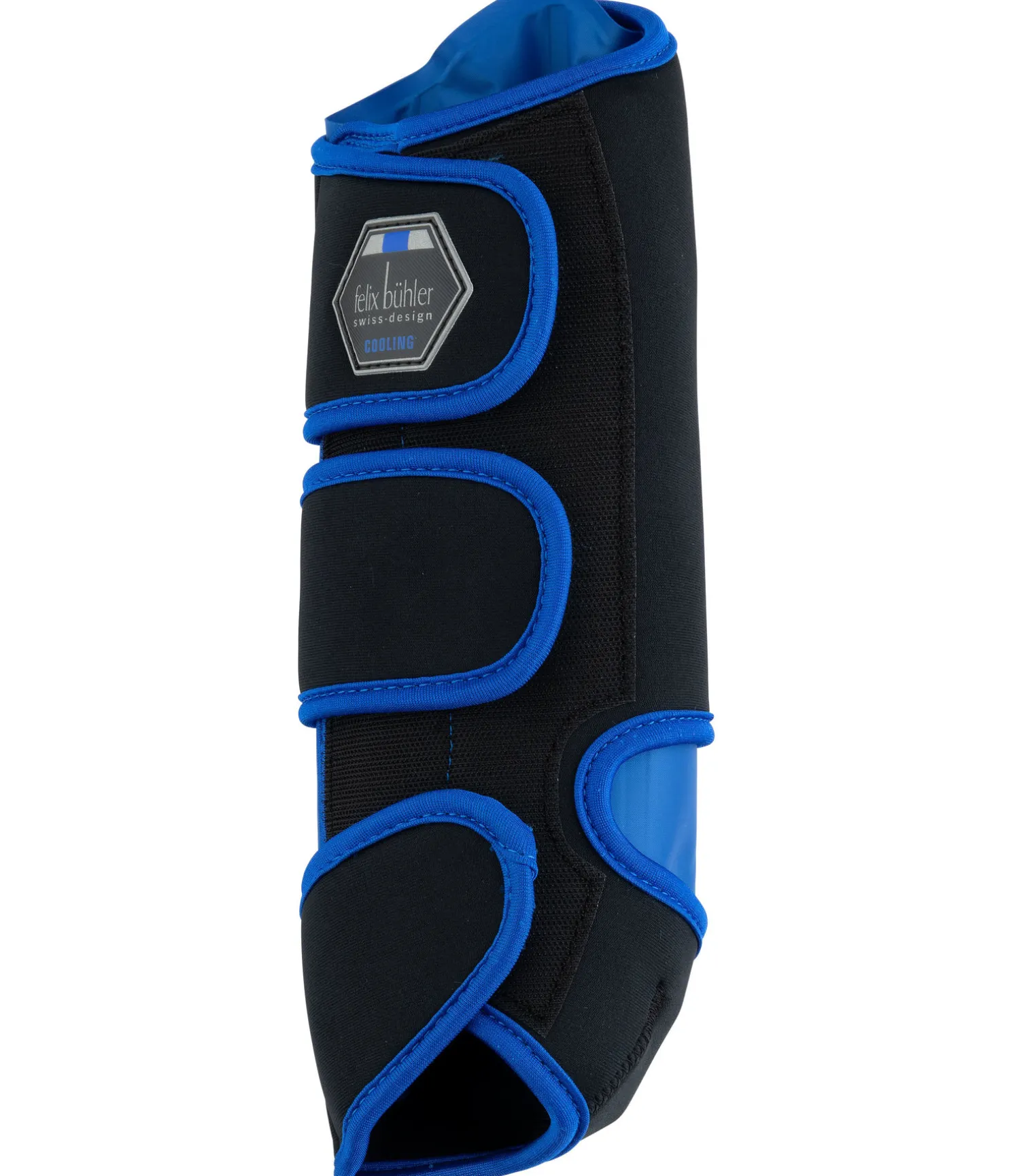 Les guêtres rafraîchissantes Felix Bühler Cool Down sont idéales pour soigner les tendons et articulations par le froid. Utilisées régulièrement avant ou après un entraînement intensif ou comme soutien après une blessure, ces guêtres ont un effet positif sur la régénération. Peut accélérer le processus de convalescence. Le gel contenu dans les guêtres rafraîchissantes reste mou même lorsqu’il est froid et est réparti partout dans le coussin afin d’assurer une grande surface de contact. La guêtre en caoutchouc-chloroprène garantit un bon maintien sur la jambe du cheval. Placer les guêtres rafraîchissantes au réfrigérateur 30 minutes avant utilisation. L’effet rafraîchissant dure jusqu’à 30 minutes. Attention : s’il est conservé trop longtemps au congélateur, le gel refroidissant risque de geler. Matière extérieure 100 % caoutchouc-chloroprène, pad rafraîchissant à l’intérieur. Vendu par paire.
