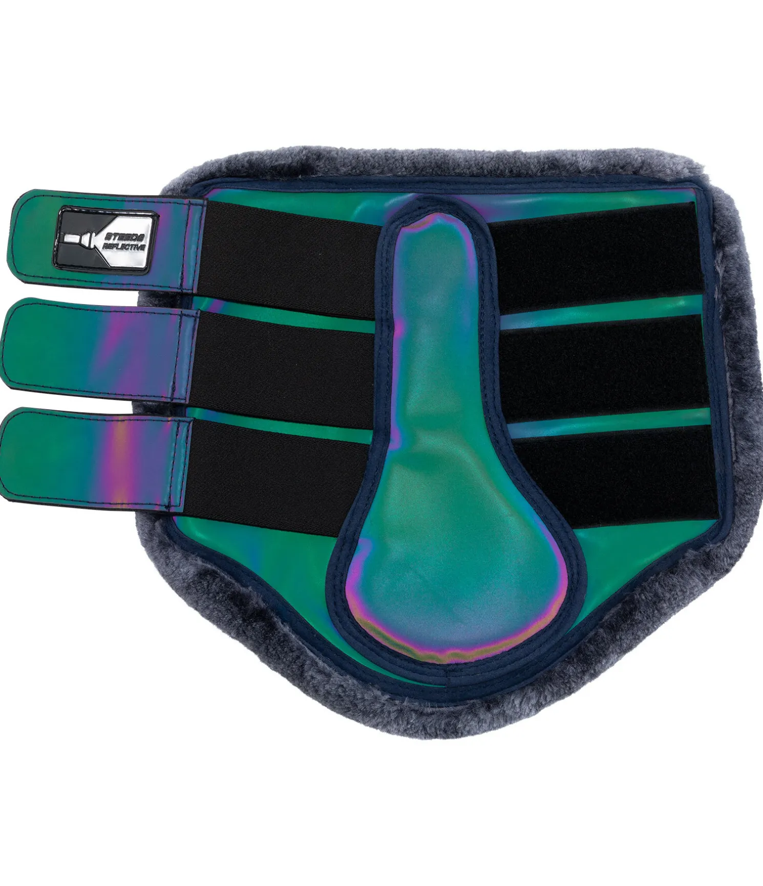 Guêtres holographiques. Réfléchissent la lumière aux couleurs de l’arc-en-ciel. Avec bordure en polaire Teddy douce pour éviter les irritations liées aux frottements. Trois pattes auto-agrippantes élastiquées pour un ajustement optimal. Forme anatomique s’adaptant de façon idéale aux antérieurs du cheval. Protection optimale contre les chocs grâce à la matière extérieure robuste et déperlante. Surface lisse pour faciliter le nettoyage. Doublure intérieure en caoutchouc-chloroprène moelleux.