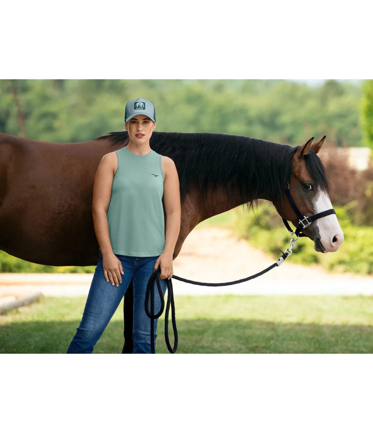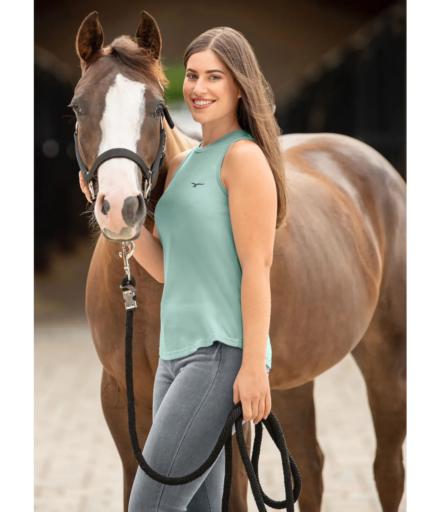 Haut décontracté respirant en matière mesh avec col rond haut. 85 % polyester, 15 % coton.