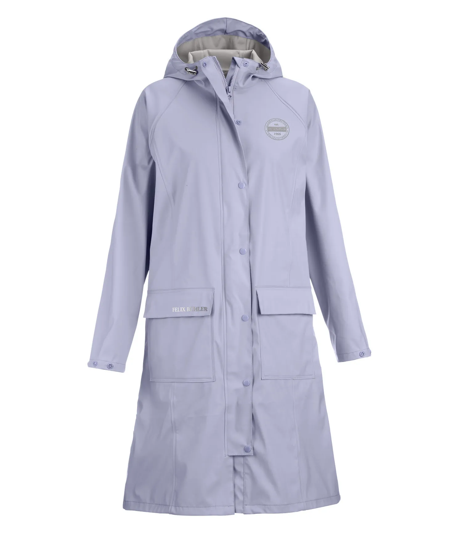 Imperméable d’équitation très long et confortable. Longue fente cavalière doublée. Capuche réglable avec système de fixation dans le dos. Imperméable (5 000 mm) et coupe-vent. Courroies de jambes réglables pour maintenir l’imperméable en place lors de la pratique de l’équitation. Fermeture à glissière double sens dissimulée avec sous-patte et protège-menton. Bas de manches réglables. 2 poches à rabat avec imprimé Felix Bühler réfléchissant. Logo réfléchissant sur la poitrine. Passepoil réfléchissant dans le dos. 100 % polyuréthane.