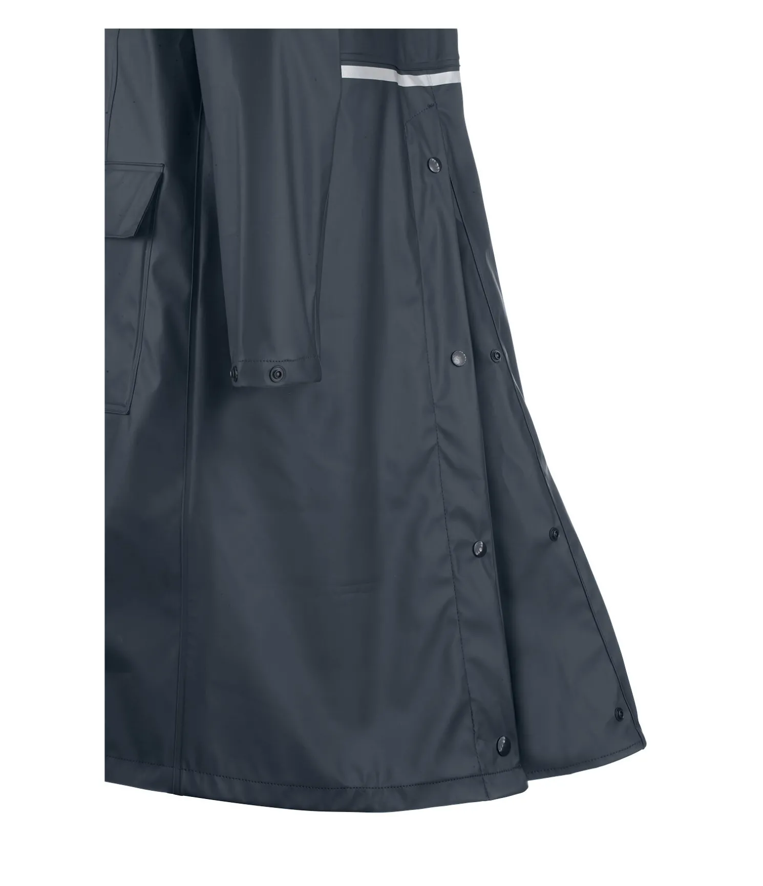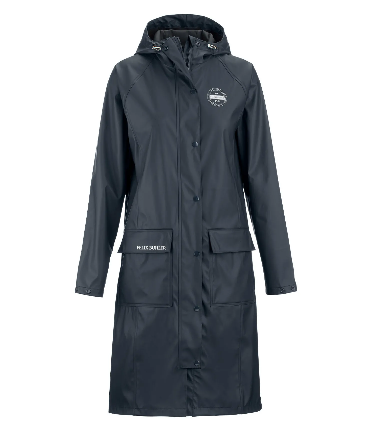 Imperméable d’équitation très long et confortable. Longue fente cavalière doublée. Capuche réglable avec système de fixation dans le dos. Imperméable (5 000 mm) et coupe-vent. Courroies de jambes réglables pour maintenir l’imperméable en place lors de la pratique de l’équitation. Fermeture à glissière double sens dissimulée avec sous-patte et protège-menton. Bas de manches réglables. 2 poches à rabat avec imprimé Felix Bühler réfléchissant. Logo réfléchissant sur la poitrine. Passepoil réfléchissant dans le dos. 100 % polyuréthane.