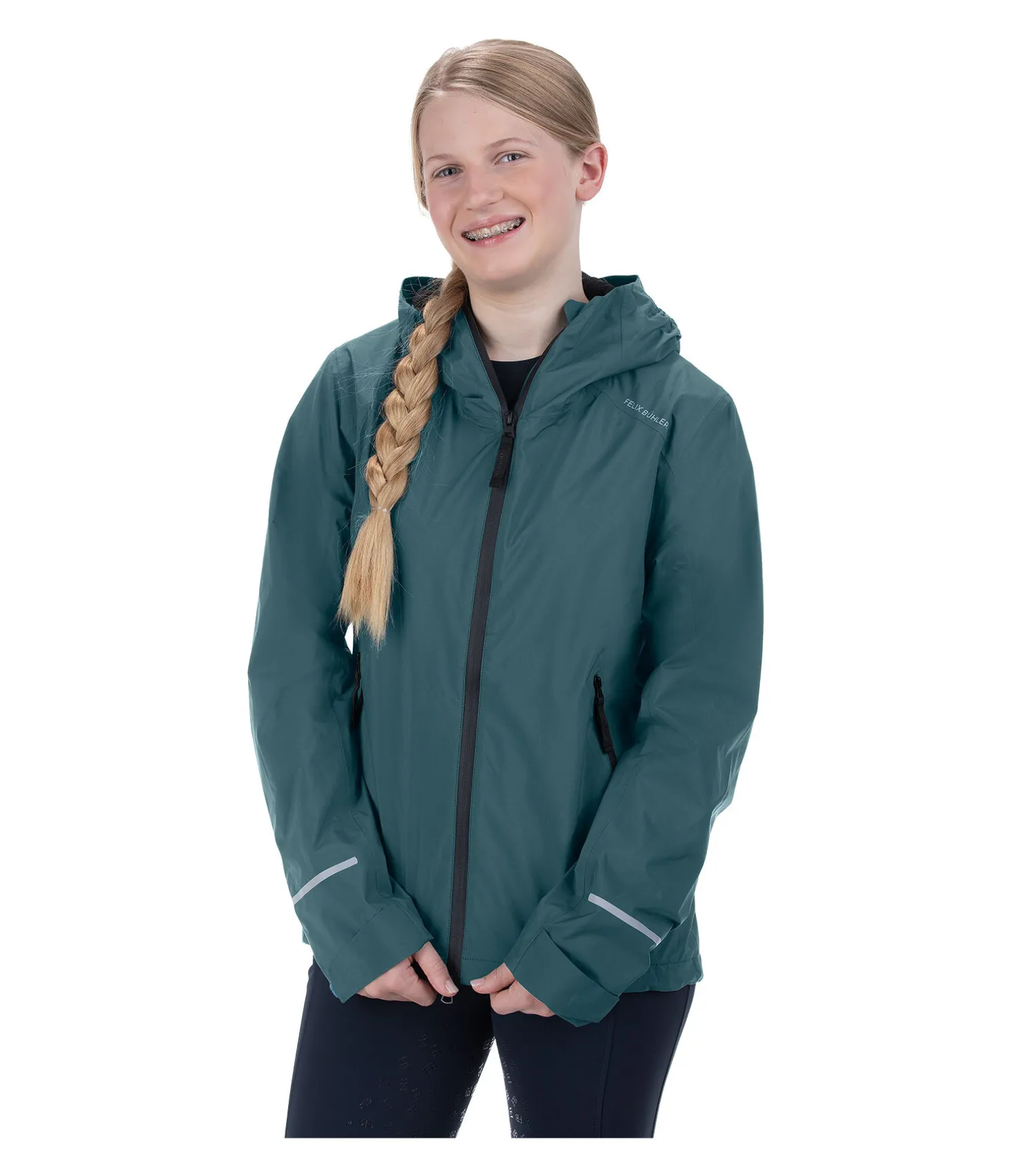 Imperméable pour enfant, très technique, avec capuche. Respirant, imperméable (5.000 mm) et coupe-vent. Fermeture à glissière étanche avec sous-patte et protège-menton. 2 poches avant avec zip étanche. Bandes et imprimés logo réfléchissants. Capuche à col haut pouvant être fixée dans le dos. Doublure en mesh, poignets réglables. Grand point fort de cet imperméable : il peut se replier dans la petite poche dorsale et peut ainsi être transporté partout facilement.