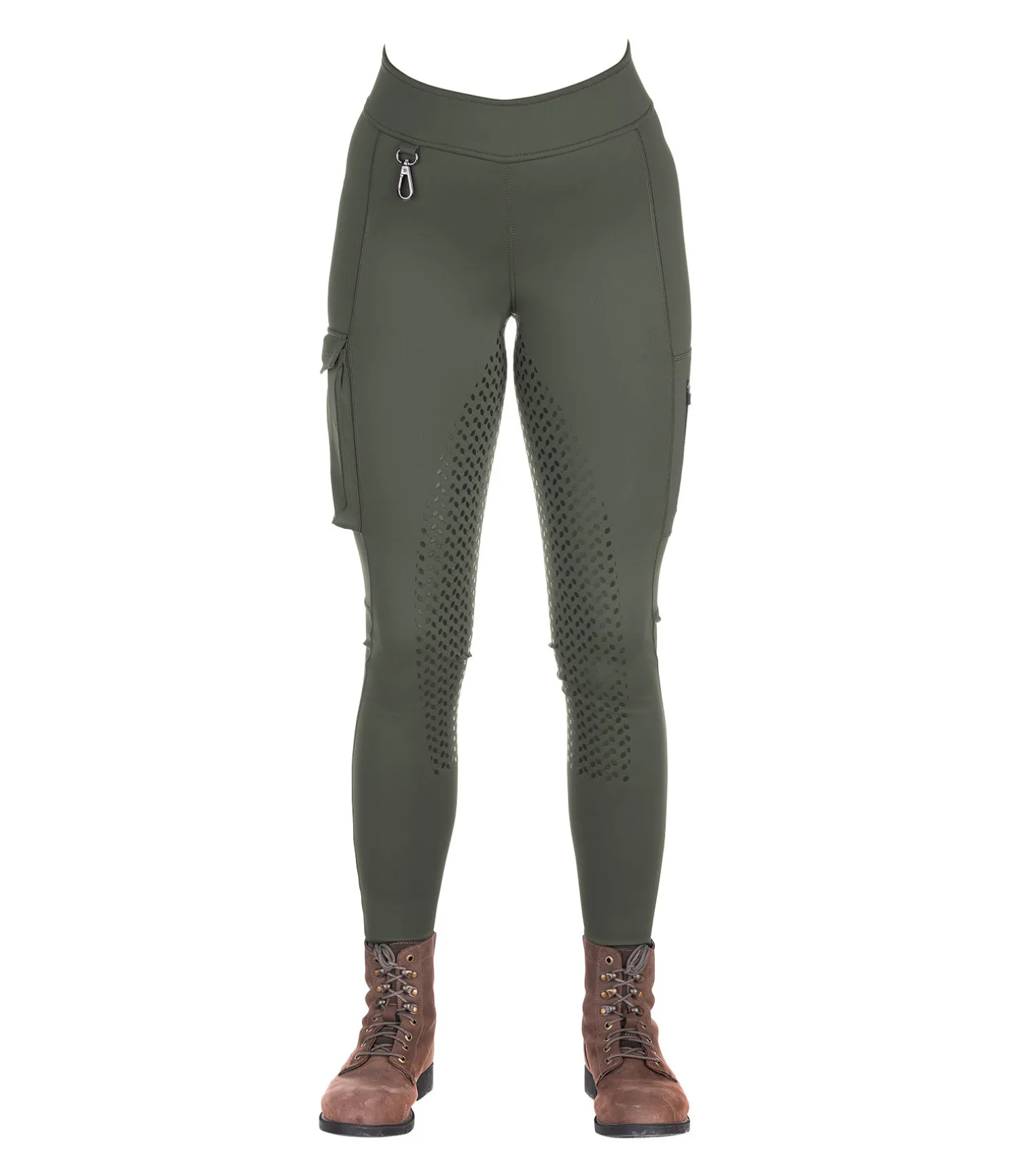 Legging d’équitation confortable avec fond intégral en silicone et taille haute pour un confort optimal. Petite poche zippée plate sur la ceinture à l’arrière du pantalon, poche zippée plate sur la cuisse gauche et poche cargo avec patte auto-agrippante sur la cuisse droite. Avec mousqueton cousu. La matière est très extensible et s’adapte parfaitement à toutes les morphologies, tout en restant suffisamment ferme pour avoir un léger effet sculptant. 71 % polyamide, 29 % élasthanne.
