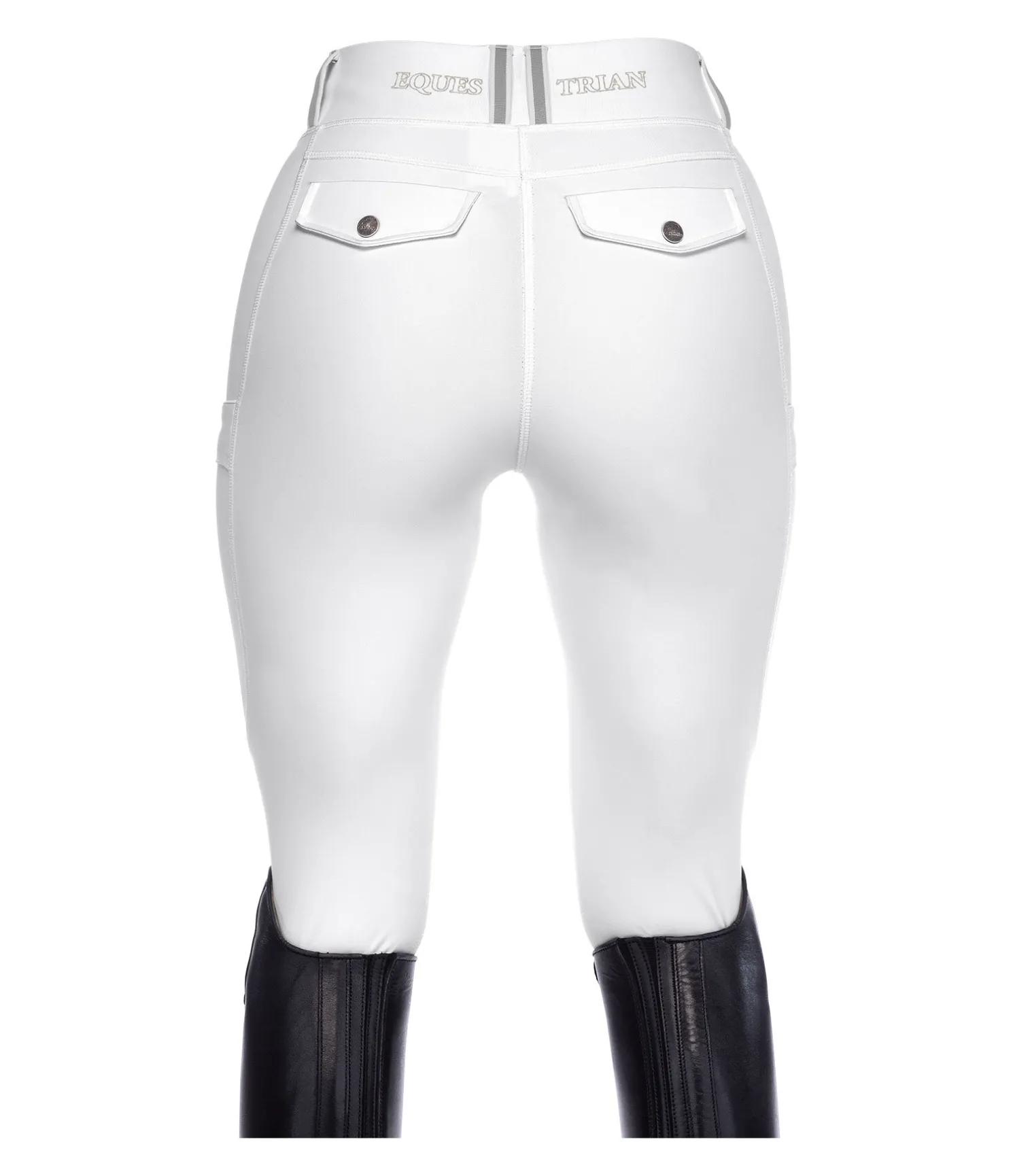 Legging d’équitation super confortable avec basanes en silicone. Matière respirante, extensible dans 4 directions. Séchage rapide. Ceinture large avec passants. 2 poches latérales pour téléphone portable. Aucune couture au niveau des genoux. 2 fausses poches à l’arrière. 78 % polyester, 22 % élasthanne.