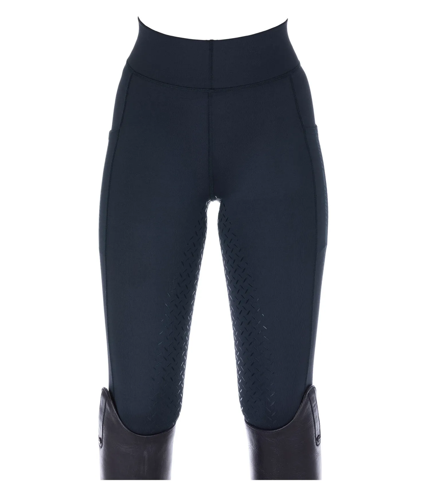Legging d’équitation enfant sportswear. Matière respirante douce et extensible dans 4 directions. Fond intégral en silicone. 2 poches latérales pour téléphone portable. Bandes floquées avec reflets multicolores sur le côté. Logo marque avec reflts multicolores devant et à la ceinture arrière. 86 % polyester, 14 % élasthanne.