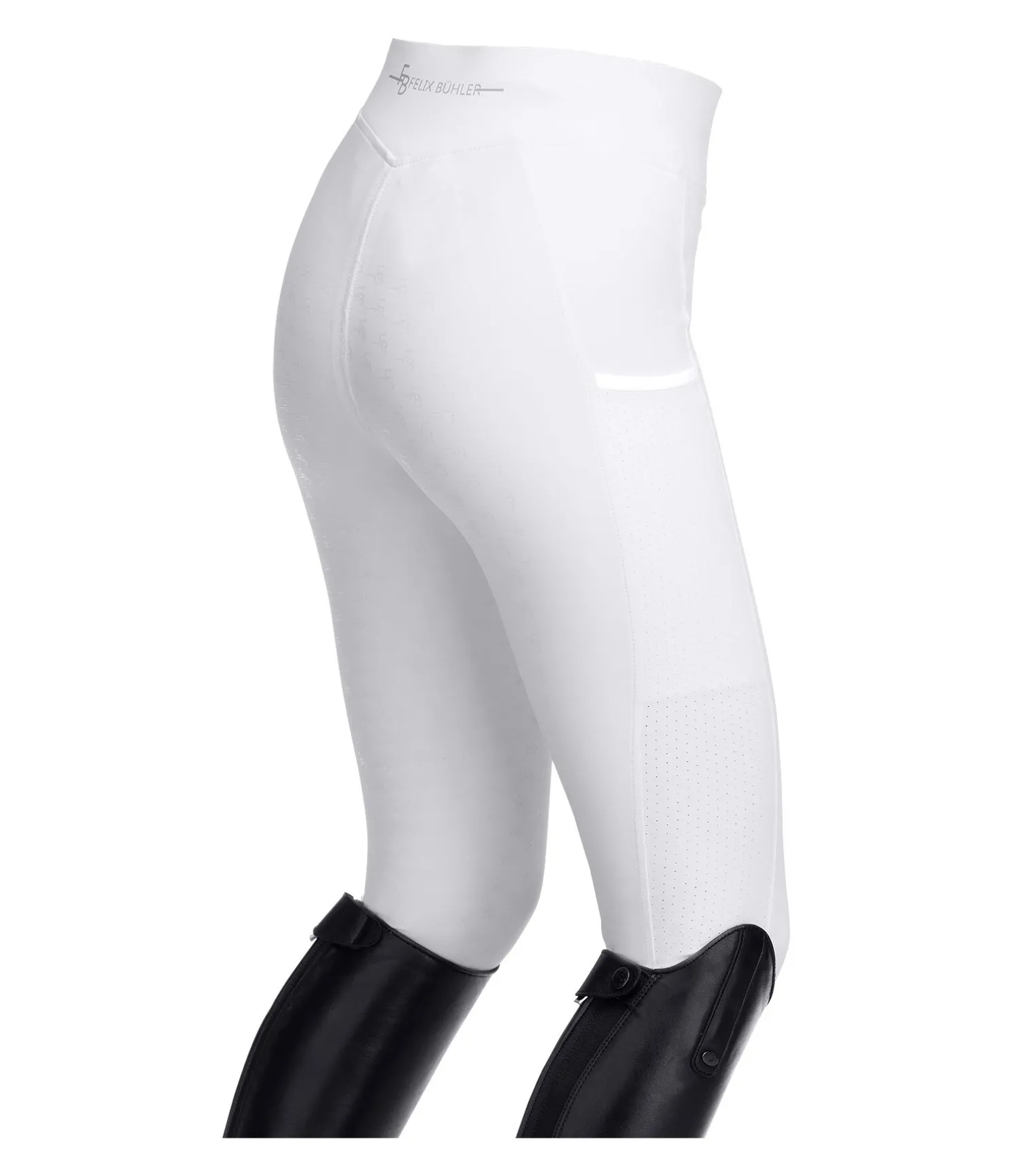 L’indispensable pour les jours chauds. Legging d’équitation pour enfant, très confortable et aéré avec empiècements en découpe laser sur la jambe. Tissu respirant, à séchage rapide et extensible dans 4 directions. Fond intégral en silicone, 2 poches latérales pour portable avec empiècements en découpe laser. Sans coutures aux genoux et imprimé sportif Felix Bühler. 78 % polyester, 22 % élasthanne.