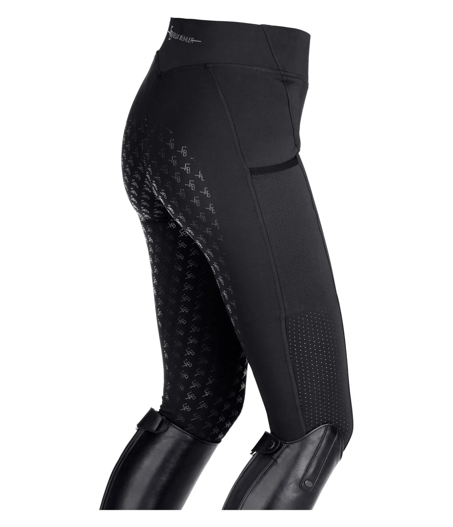 L’indispensable pour les jours chauds. Legging d’équitation pour enfant, très confortable et aéré avec empiècements en découpe laser sur la jambe. Tissu respirant, à séchage rapide et extensible dans 4 directions. Fond intégral en silicone, 2 poches latérales pour portable avec empiècements en découpe laser. Sans coutures aux genoux et imprimé sportif Felix Bühler. 78 % polyester, 22 % élasthanne.
