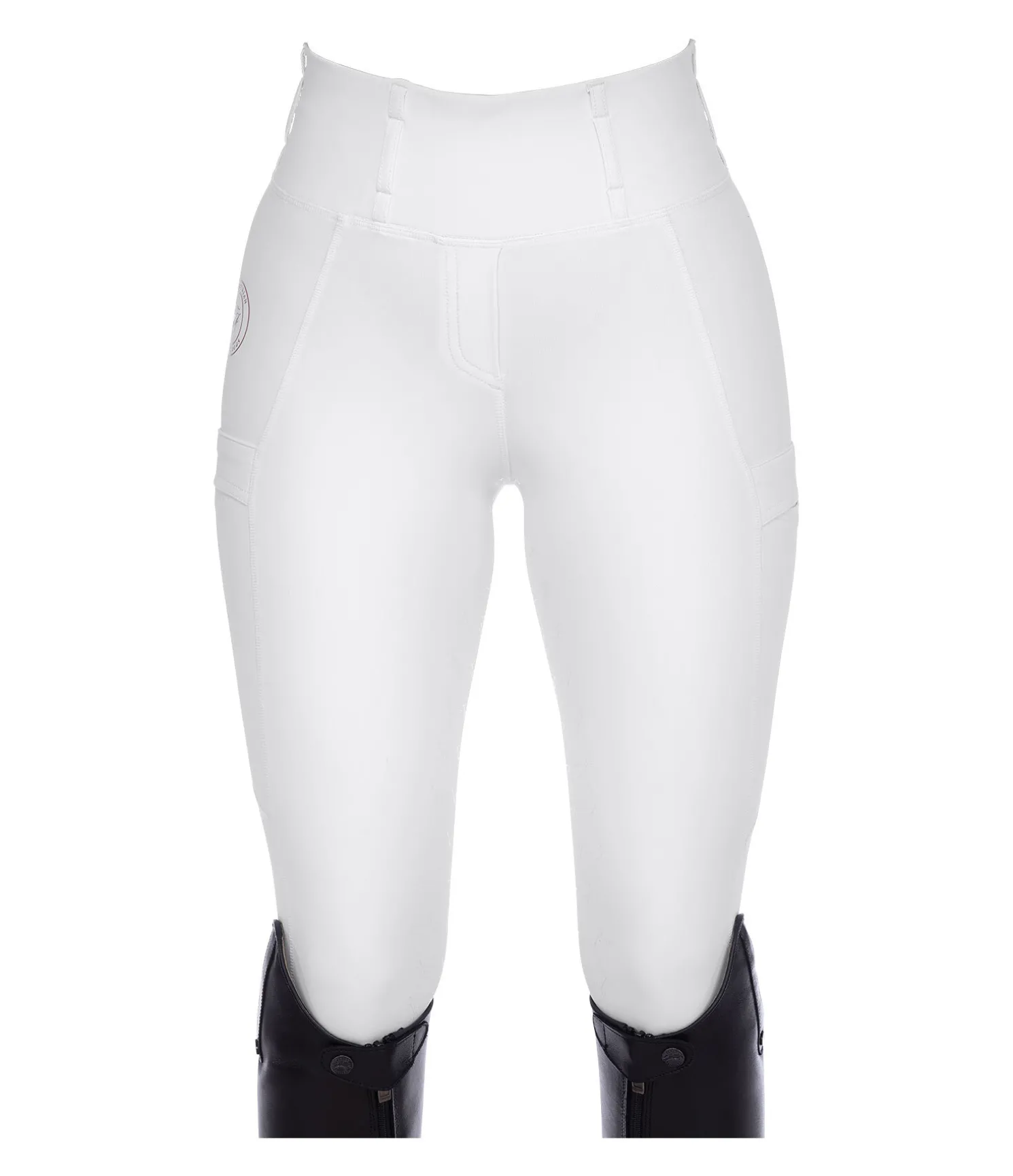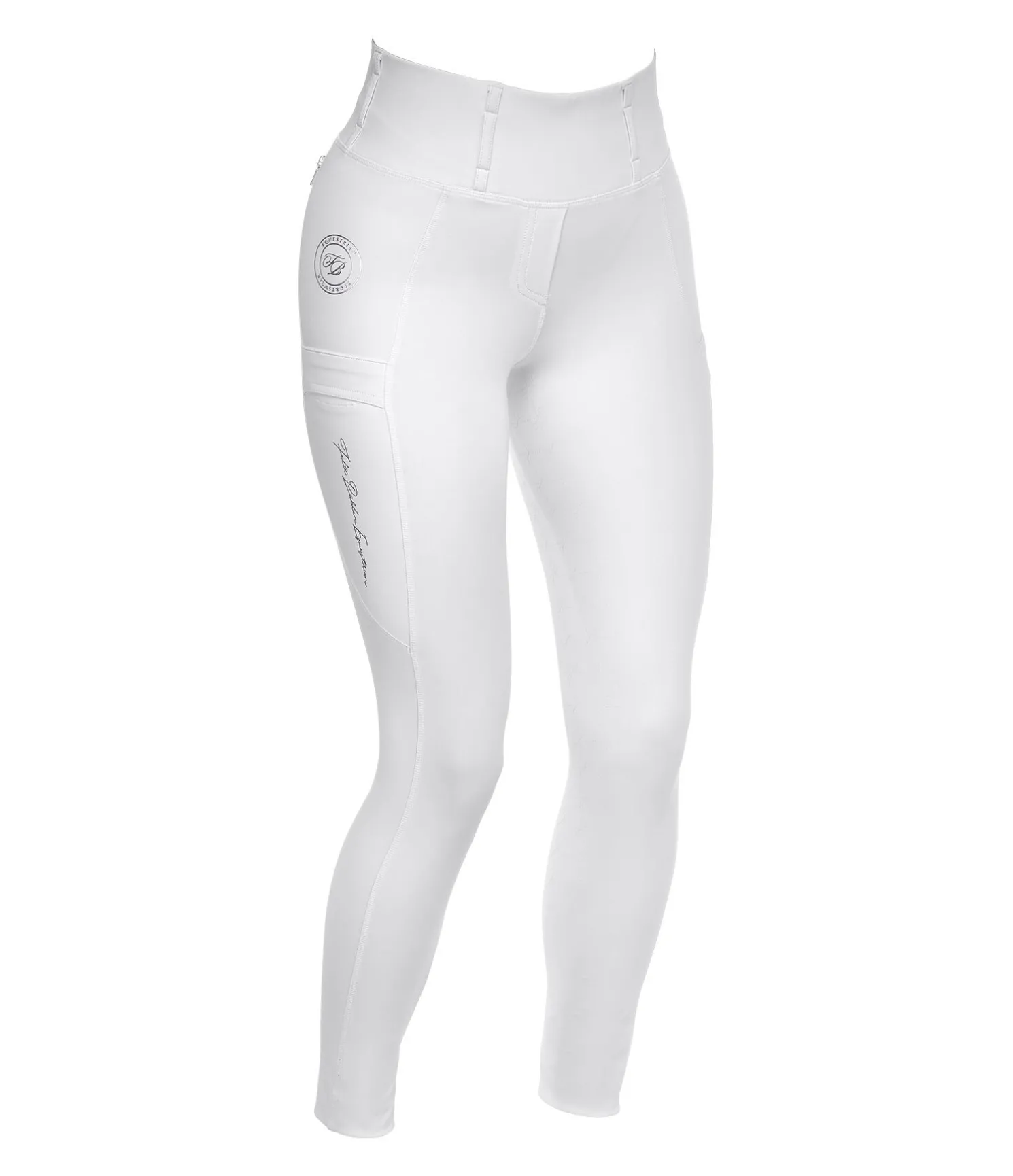 Legging d’équitation confortable à fond intégral grip en silicone avec motifs de mors. Matière respirante de grande qualité, extensible dans 4 directions. Séchage rapide. Soutien parfait et coupe ajustée. Ceinture extra large avec passants. 1 poche arrière zippée et 2 poches latérales pour téléphone portable. Aucune couture au niveau des genoux. Bas de jambe extensible. Imprimés Felix Bühler pailletés. 78 % polyester, 22 % élasthanne.