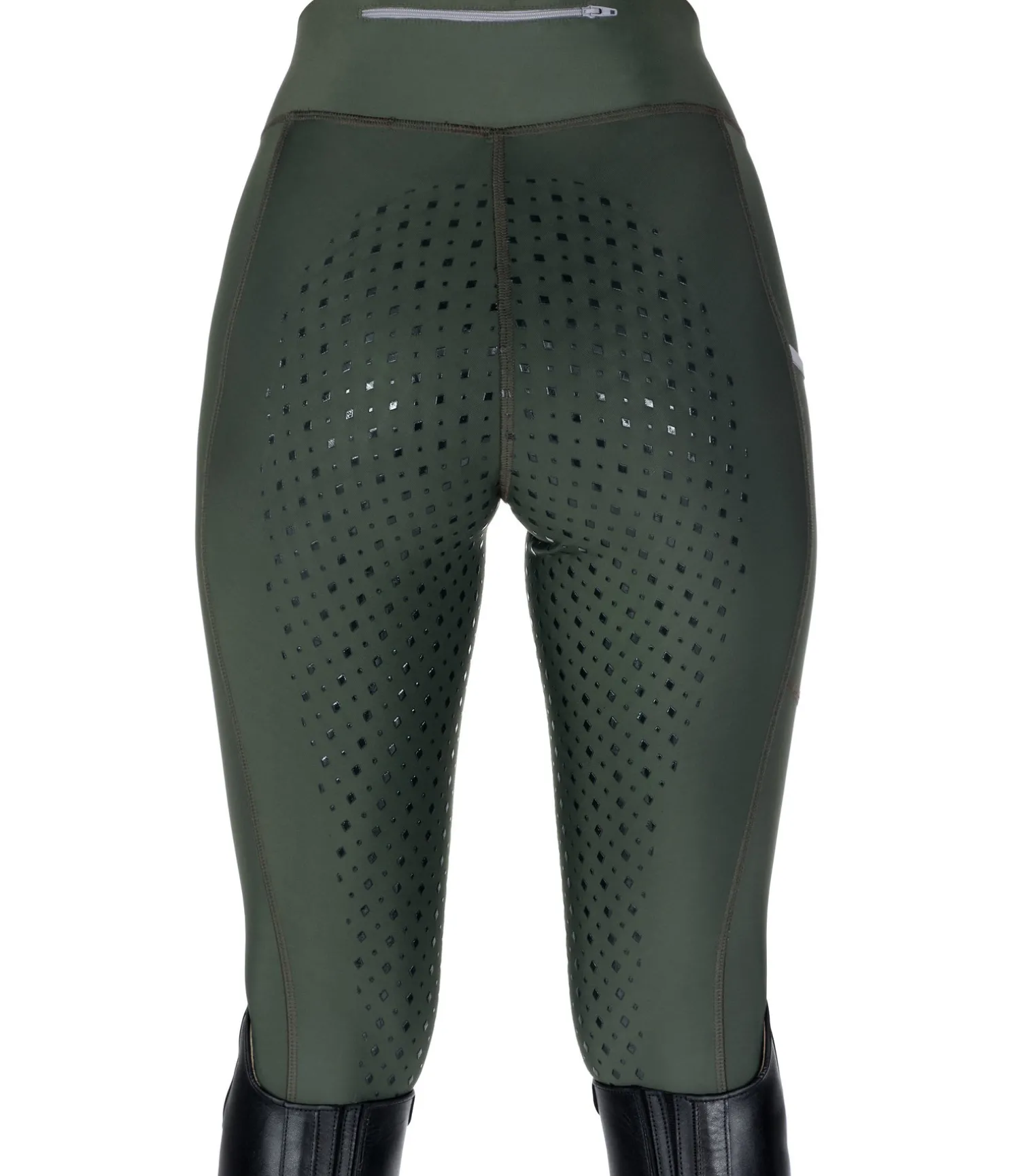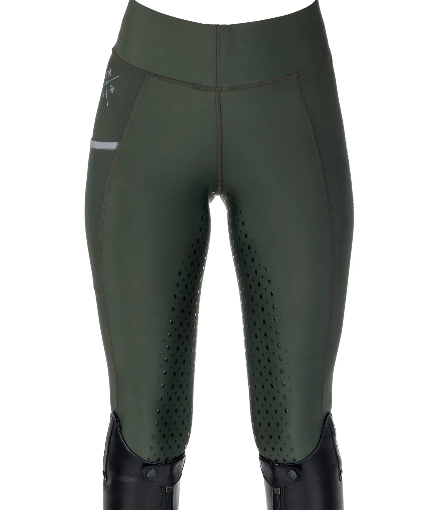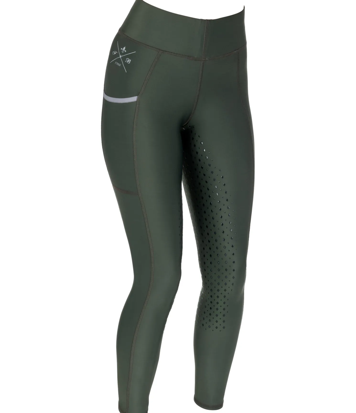 Legging d’équitation confortable. Fond intégral grip en silicone. Matière stretch extensible dans 4 directions. Ceinture extra large. Poche zippée arrière et poche latérale pour téléphone portable. Aucune couture au niveau des genoux. Bas de jambe extensible. Imprimé siliconé Felix Bühler. 90 % nylon, 10 % élasthanne.