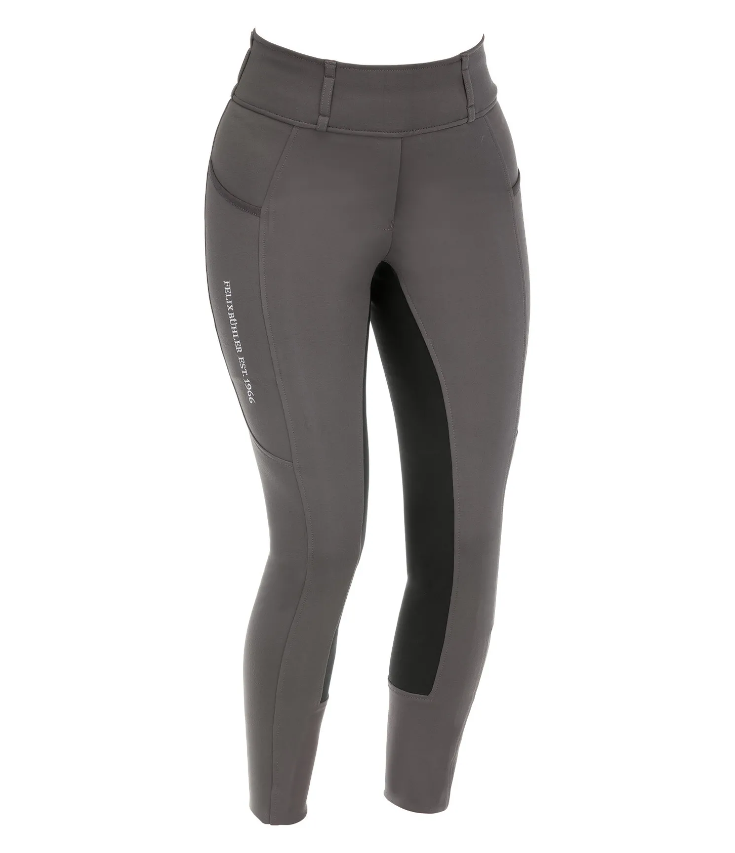 Legging d’équitation classique en matière stretch extra-douce et extensible dans 4 directions. Fond intégral avec la nouvelle technologie extra-douce COMFORT TECH SEAT. Broderie Felix Bühler sur la jambe et à l’arrière. Ceinture extra-large avec passants, 2 poches pour téléphone portable sur les cuisses, 1 petite poche arrière, bas de jambe extensible. 68 % viscose, 27 % polyamide, 5 % élasthanne. Fond 60 % nylon, 40 % polyuréthane.