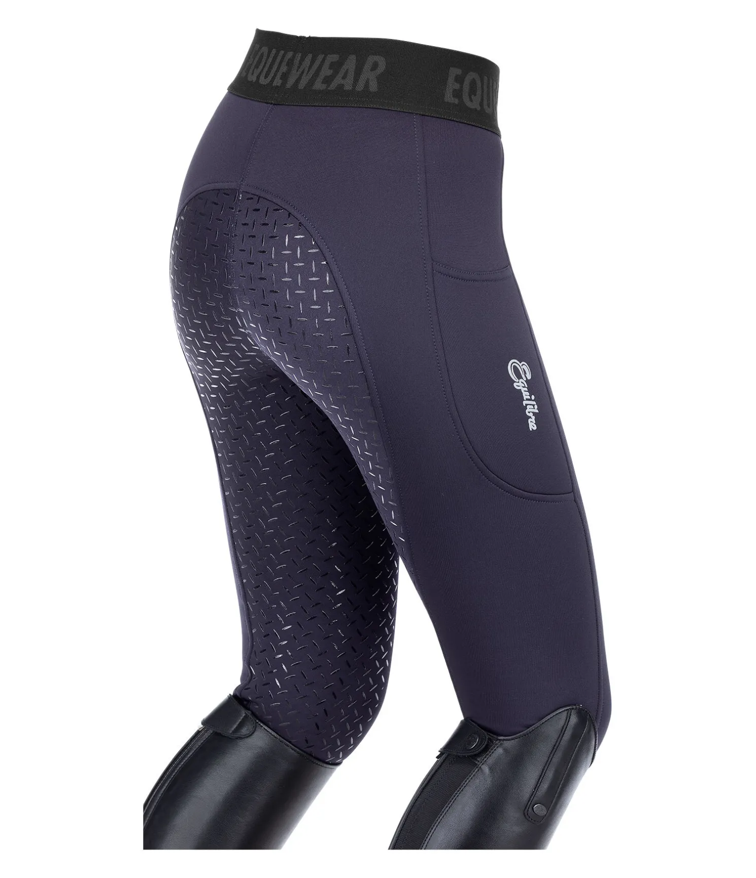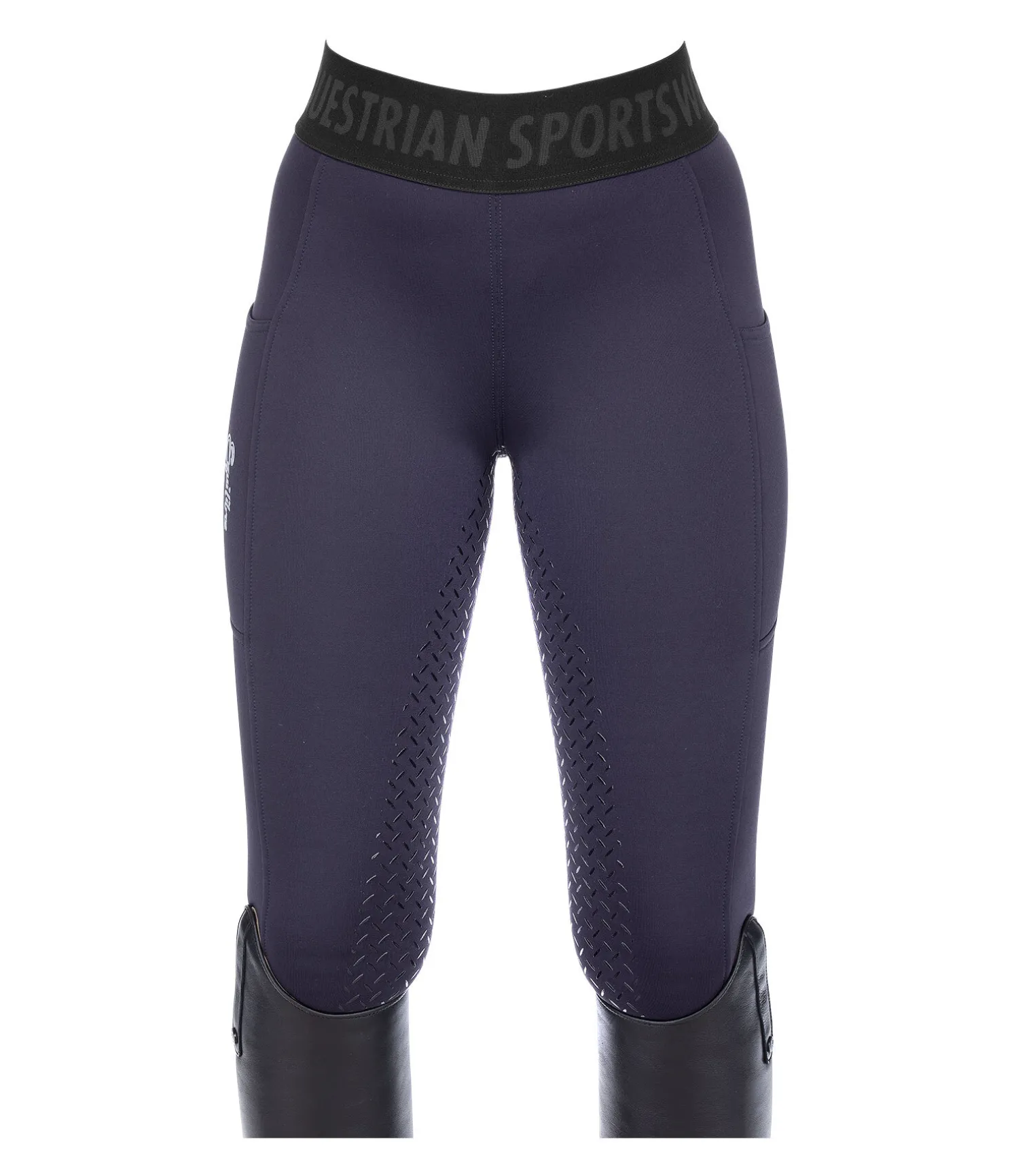 Legging d’équitation chaud avec ceinture élastiquée extra large. Matière stretch respirante et extensible dans 4 directions. Intérieur molletonné. Fond intégral grip en silicone. 2 poches avant. Imprimé Equilibre sur la poche droite. 60 % polyester, 30 % polyamide, 10 % élasthanne.