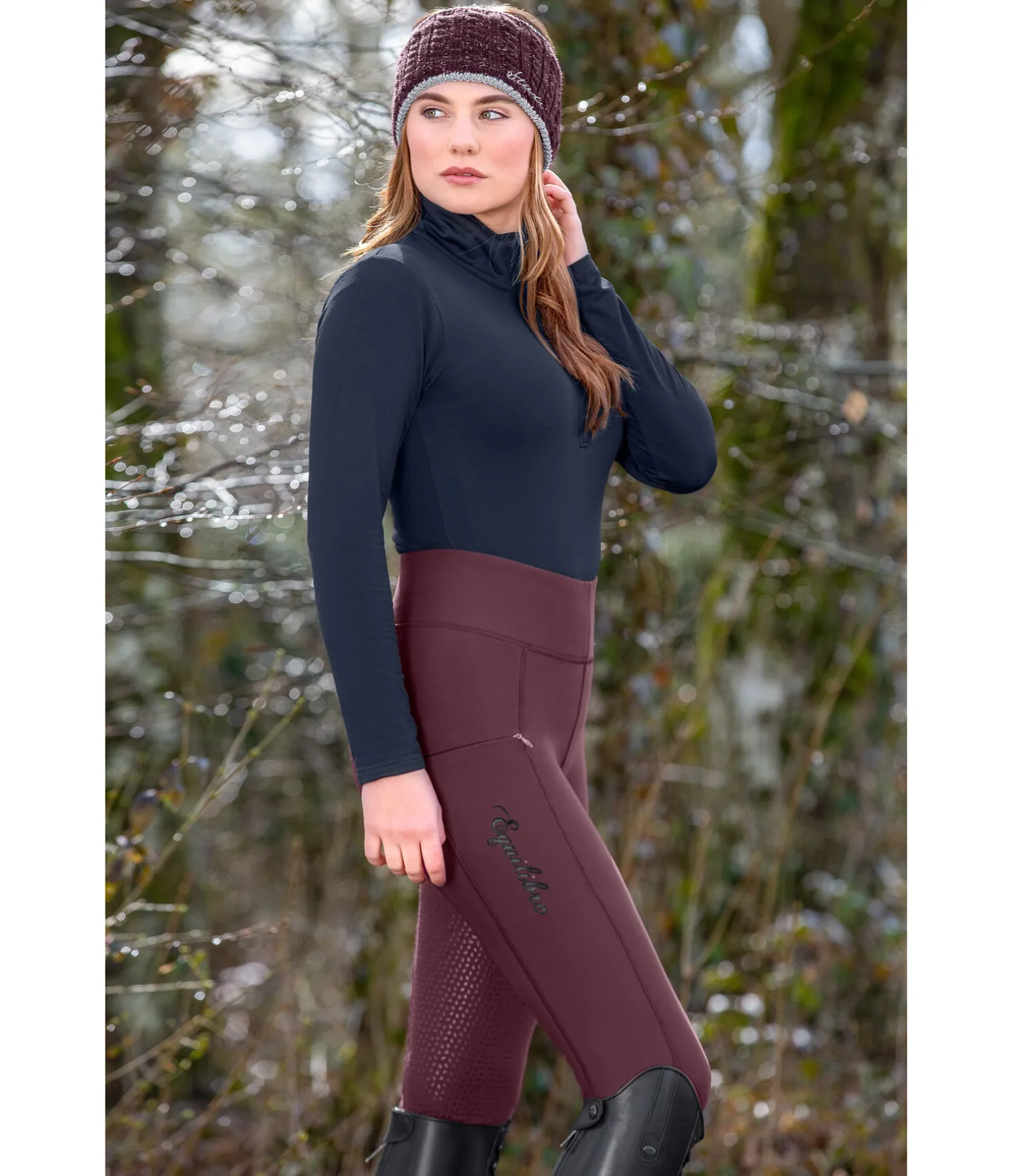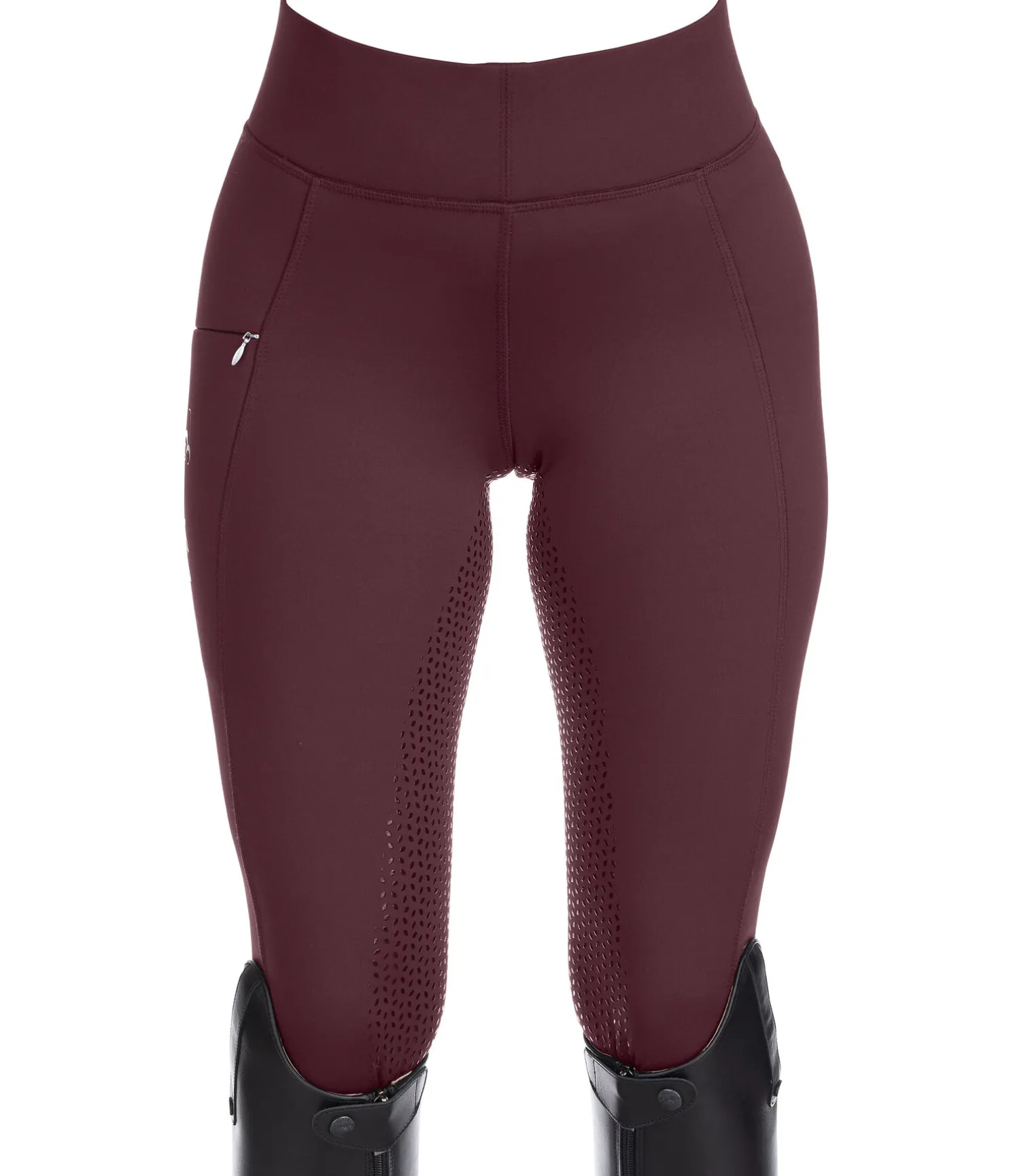 Legging d’équitation extensible avec fond intégral grip en silicone. Extérieur lisse et intérieur molletonné. Ceinture extra large élastiquée. Poche zippée pour téléphone portable sur la cuisse. Bas de jambe extensible sans patte auto-agrippante. 86 % polyester, 14 % élasthanne.