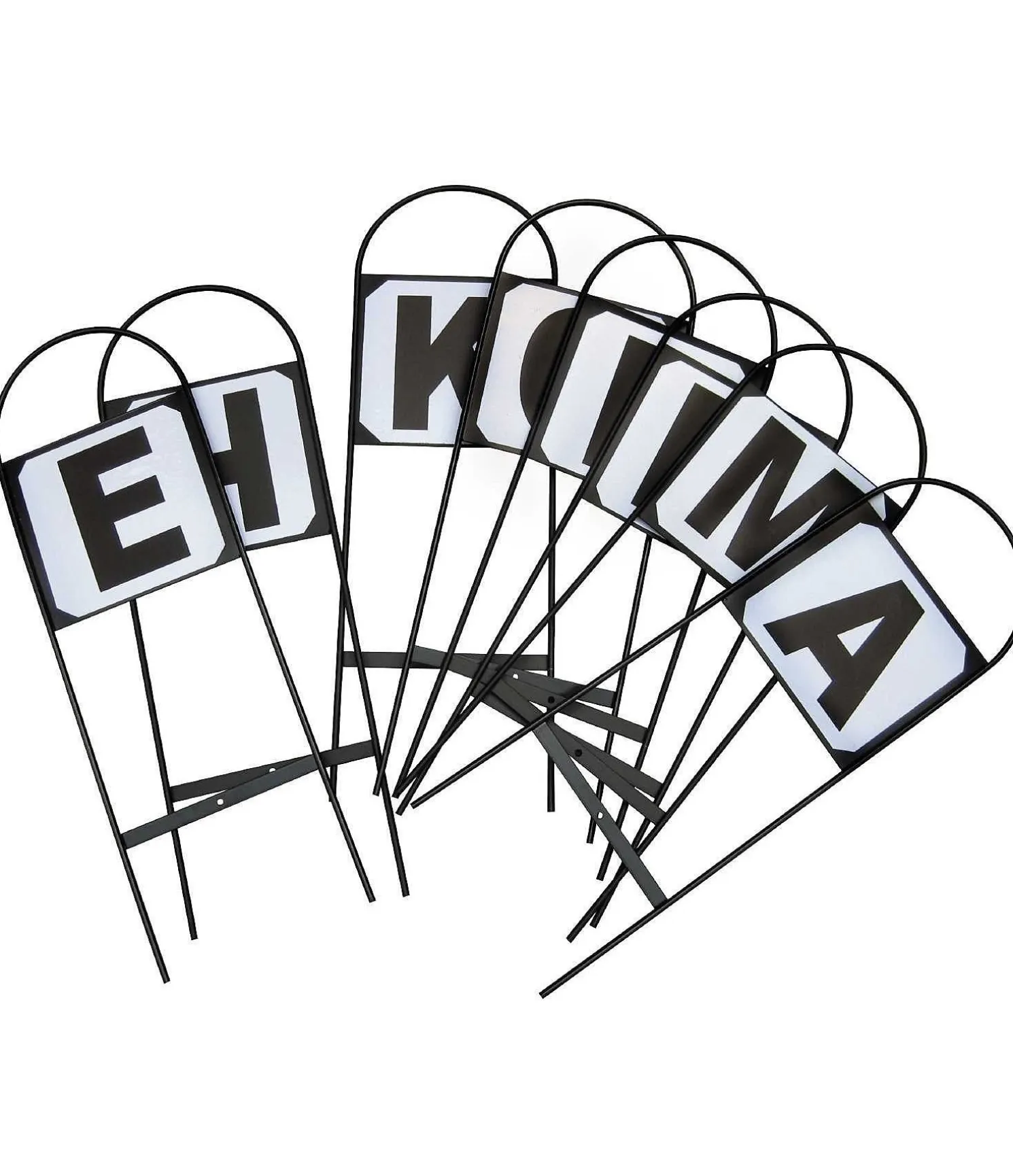 Pour carré de dressage 20 x 40. Kit contenant 8 lettres (A,B,C,E,F,H,K,M). Particulièrement résistantes aux intempéries. 70 x 14,5 cm. Lot de 8 pièces.