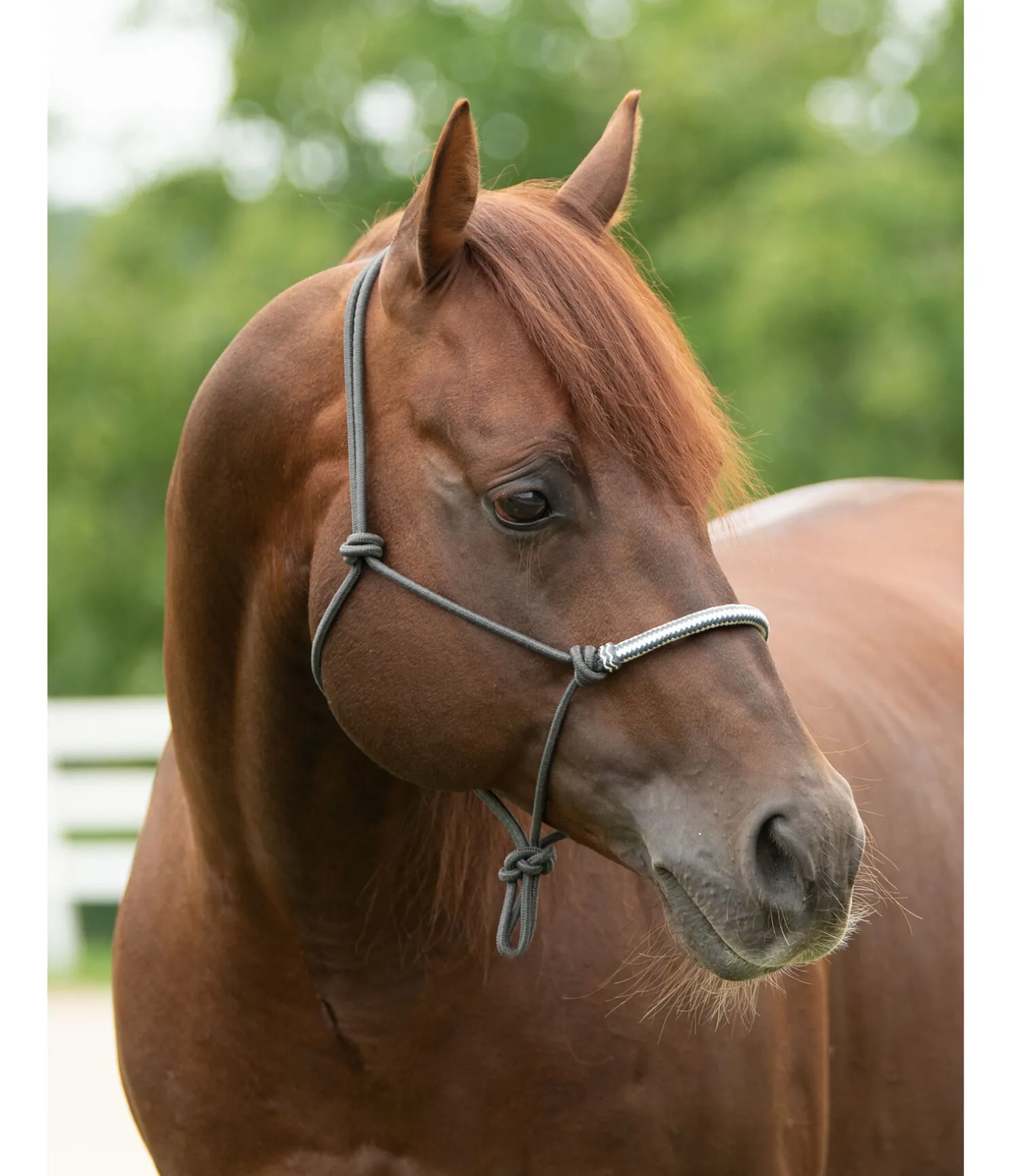 Licol à noeuds haut de gamme. Avec muserolle de couleur contrastante en cuir brut. Diamètre 6 mm.