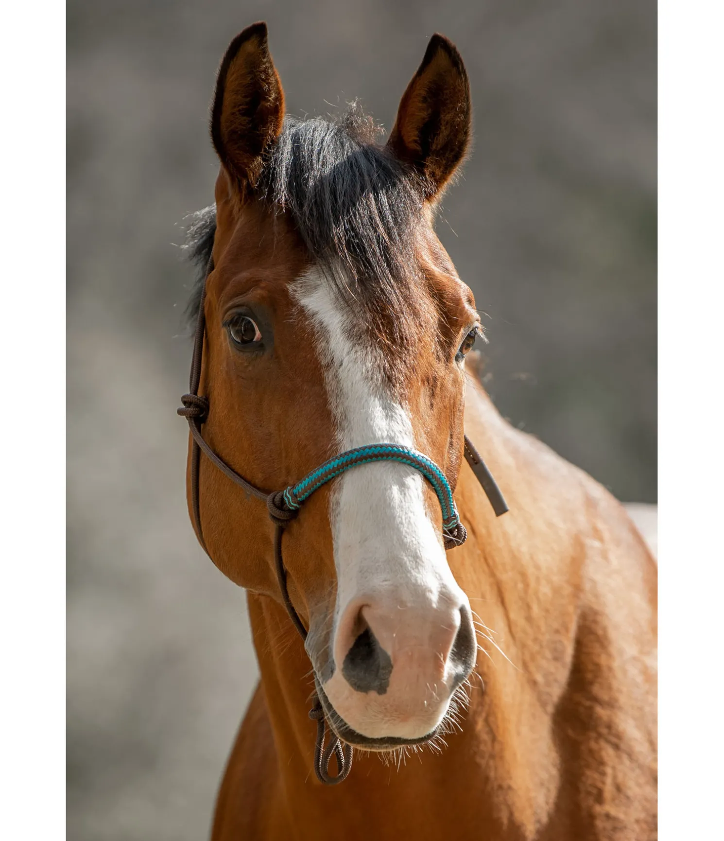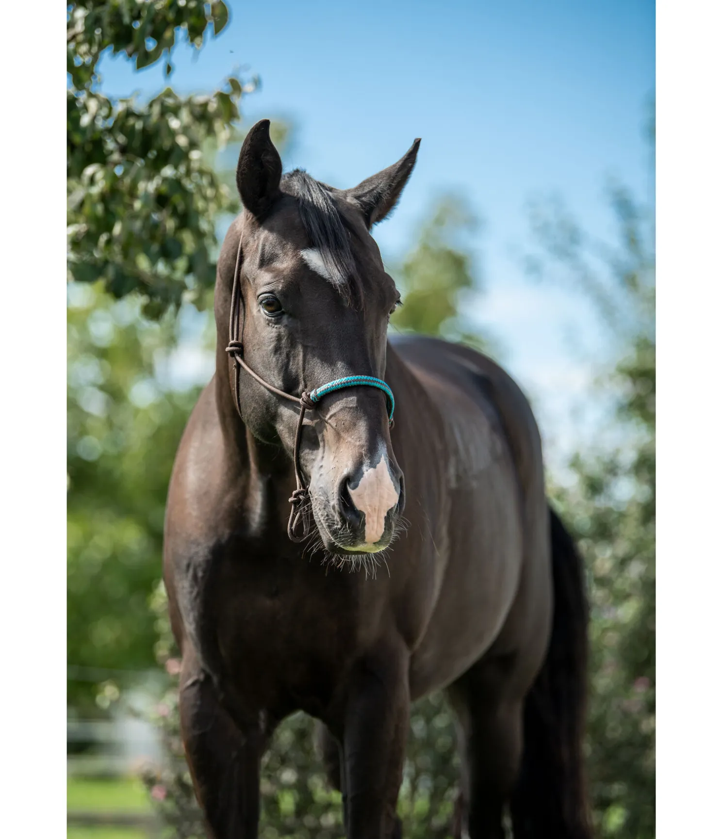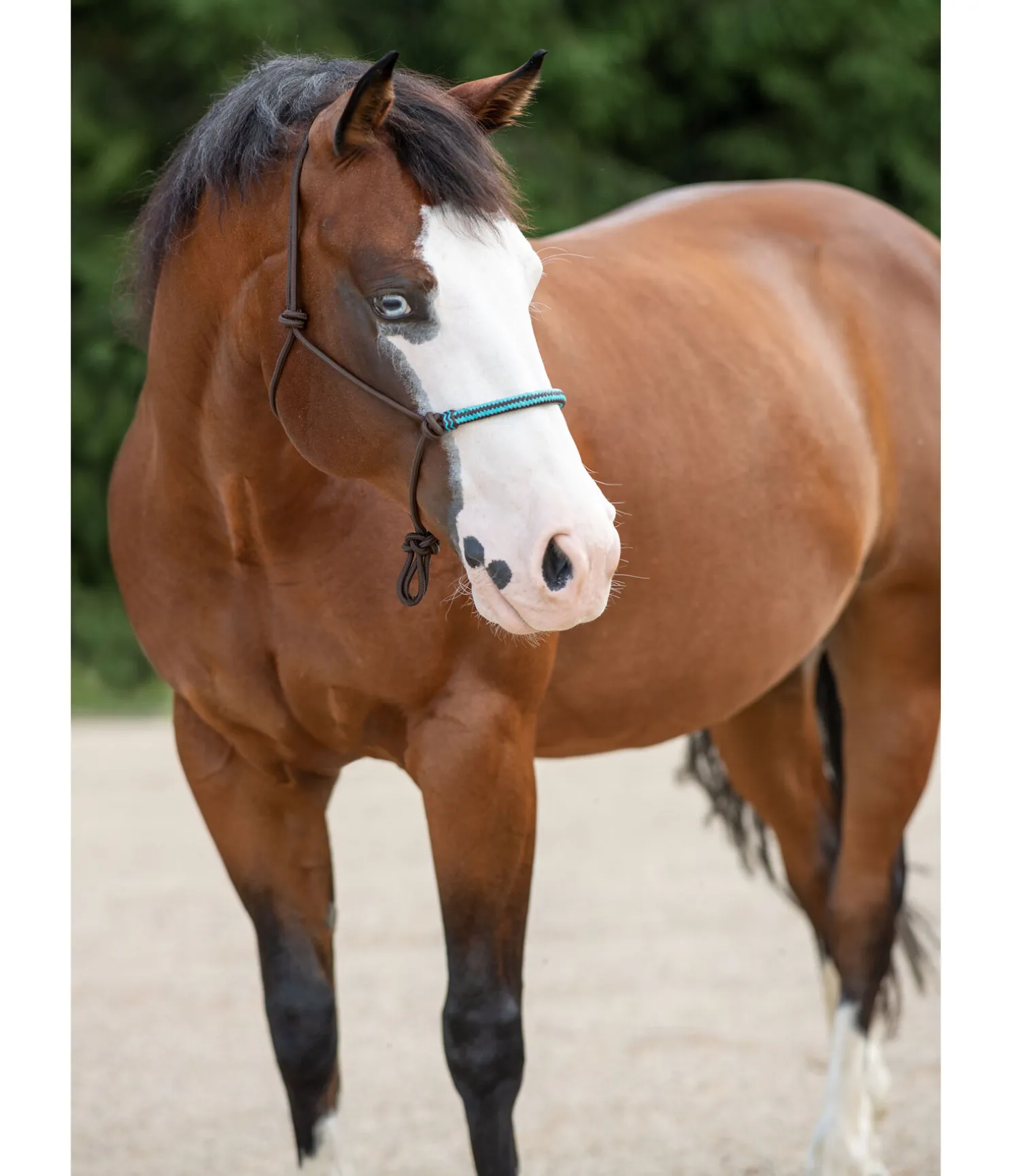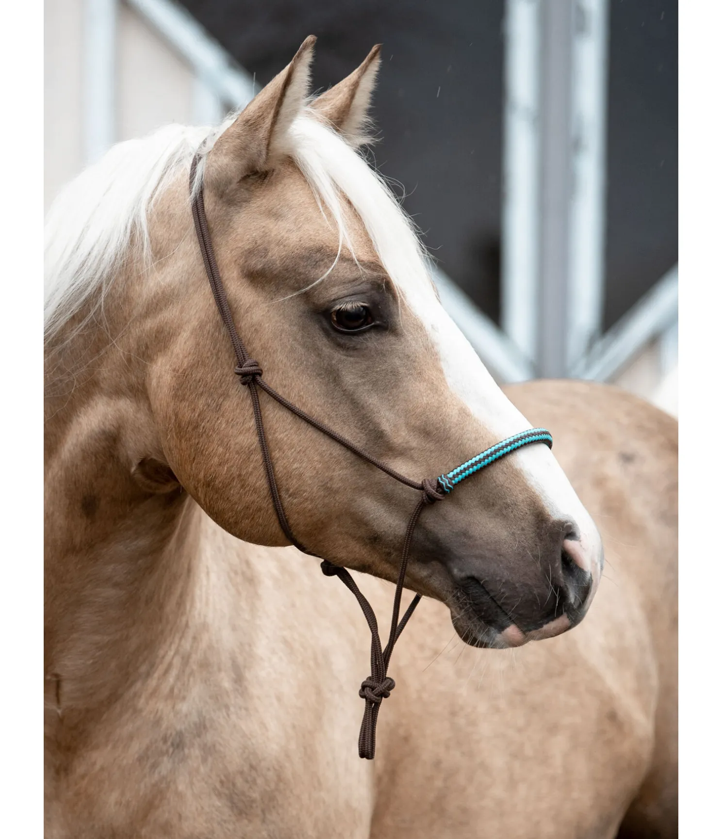 Licol à noeuds haut de gamme. Avec muserolle de couleur contrastante en cuir brut. Diamètre 6 mm.