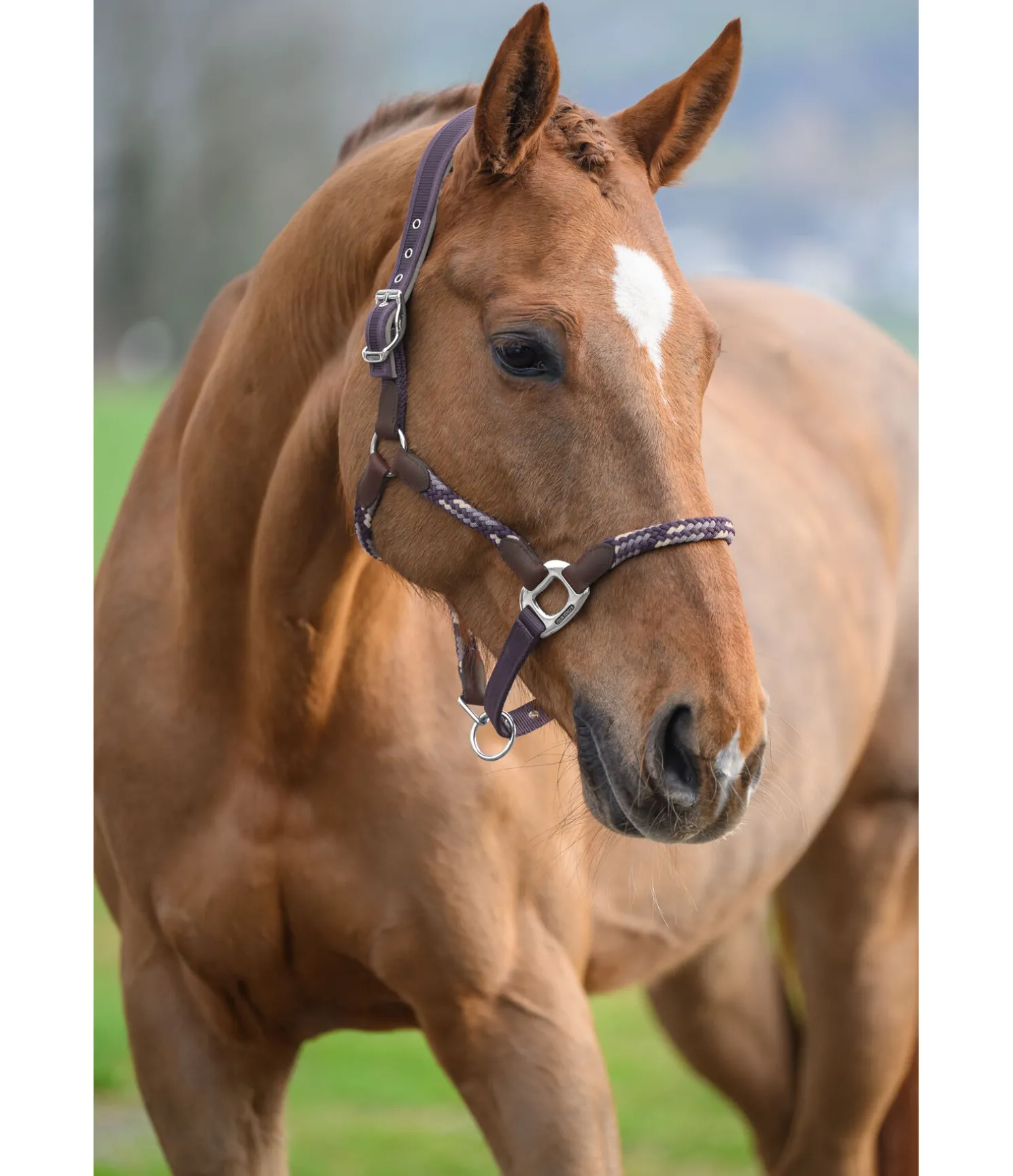 Élégant licol avec large têtière anatomique. Doublure douce en caoutchouc chloroprène. Muserolle, sous-gorge et montants en corde souple tressée pour une action directe mais douce. Têtière doublement réglable, muserolle réglable. Bouclerie résistante de qualité supérieure. 100 % polypropylène.