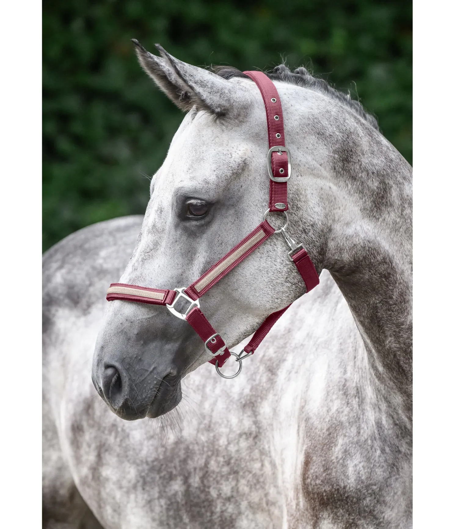 Licol tendance avec bande scintillante cousue. Têtière et muserolle avec doublure douce en caoutchouc chloroprène. Têtière et muserolle réglables. 100 % polypropylène.