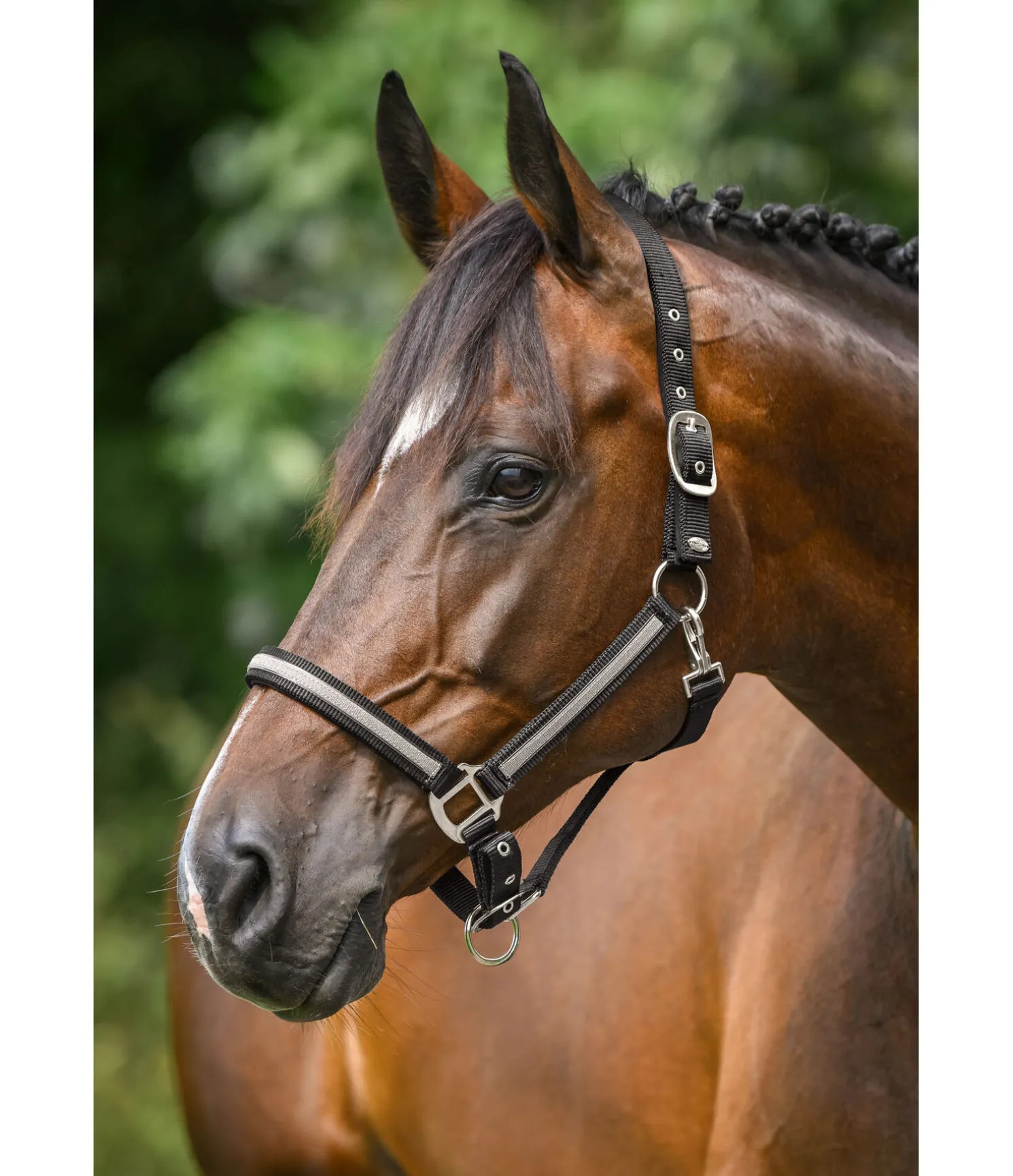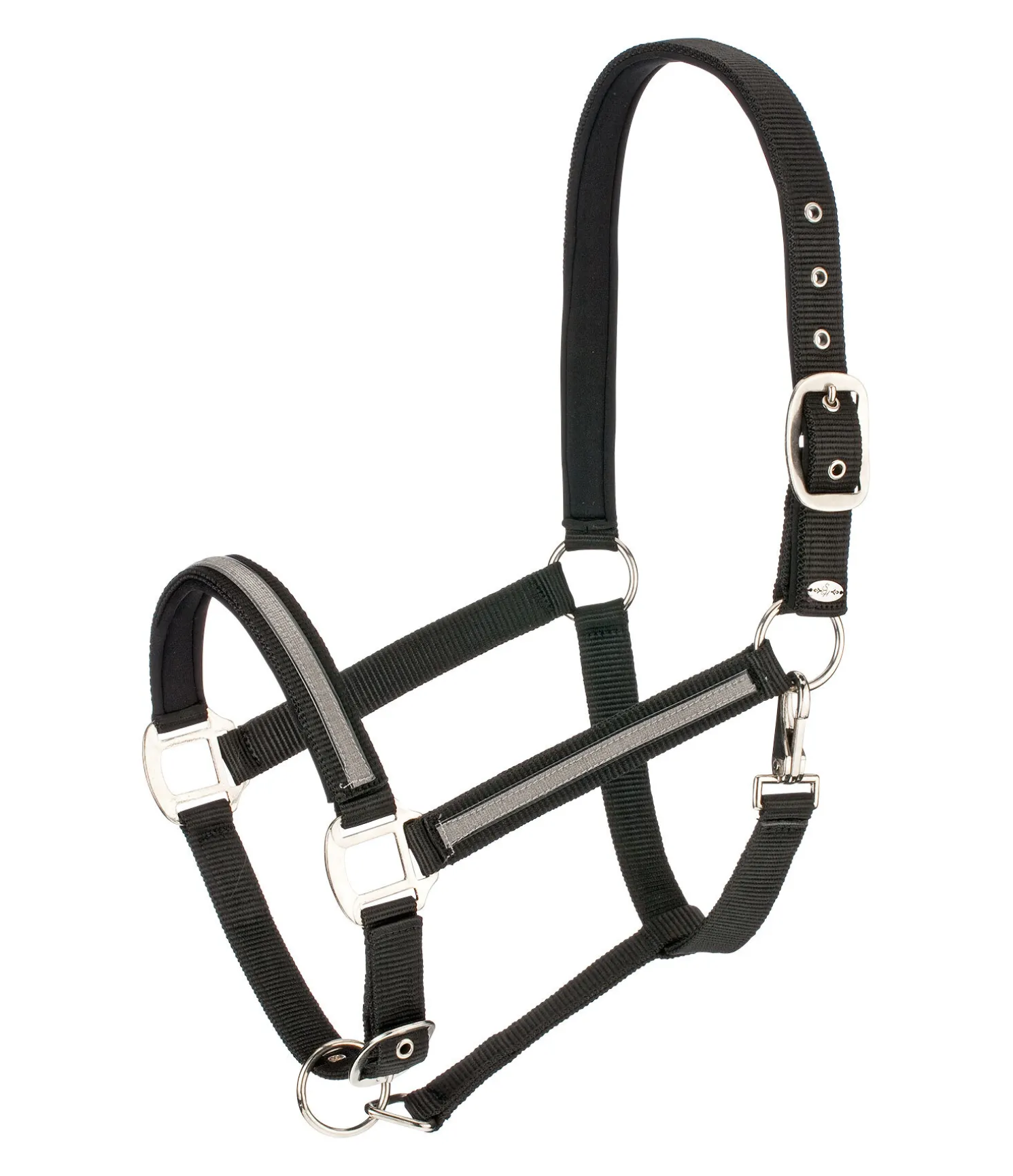Licol tendance avec bande scintillante cousue. Têtière et muserolle avec doublure douce en caoutchouc chloroprène. Têtière et muserolle réglables. 100 % polypropylène.