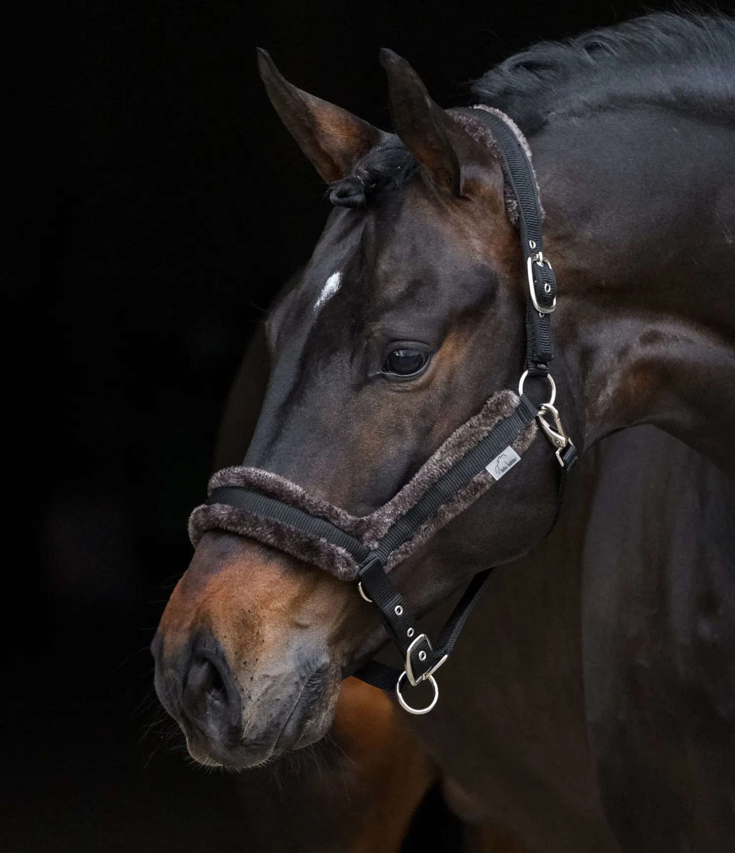 Licol particulièrement confortable avec large têtière anatomique et découpe aux oreilles. La coupe innovante en une seule partie recourbée constituant les montants et la muserolle permet d’éviter les pressions sur les nerfs faciaux et de ne pas avoir de grosses pièces métalliques sur les côtés de la muserolle. Têtière, montants et muserolle avec doublure en polaire Teddy douce. Têtière doublement réglable et muserolle réglable. Bouclerie argentée. Licol 100 % polypropylène, polaire Teddy 100 % polyester.