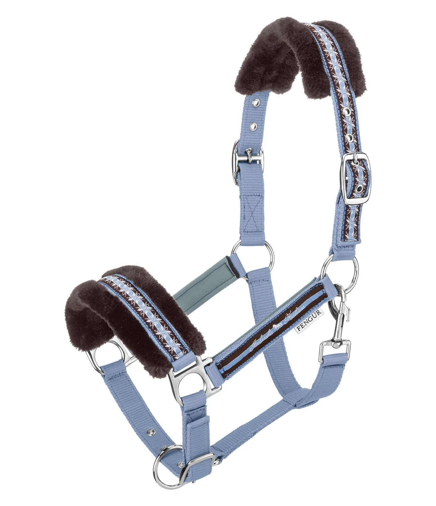 Licol en polaire Teddy au look nordique. Taille réglable de chaque côté au niveau de la têtière et facilement ajustable au niveau de la muserolle. 100 % polyester.
