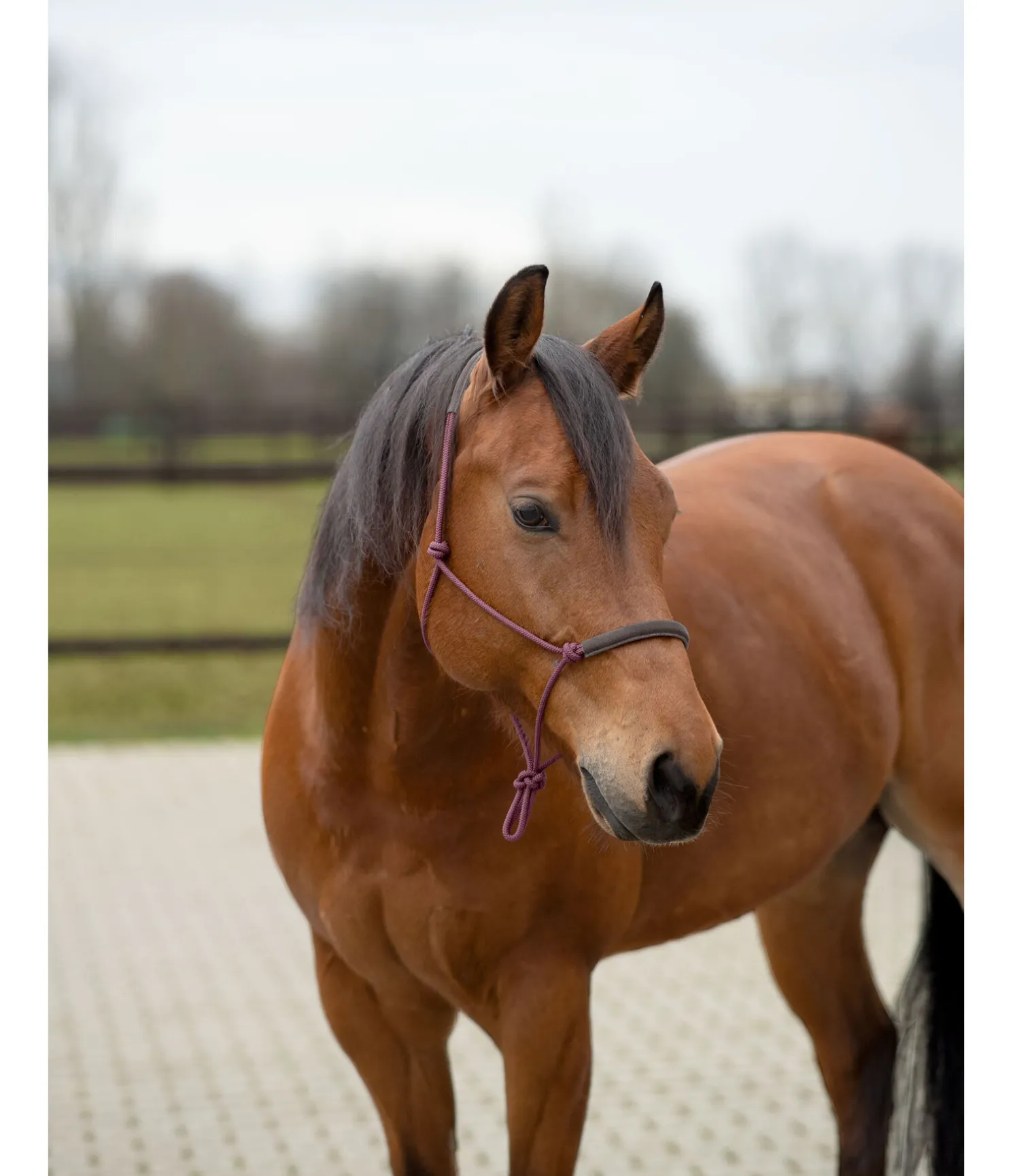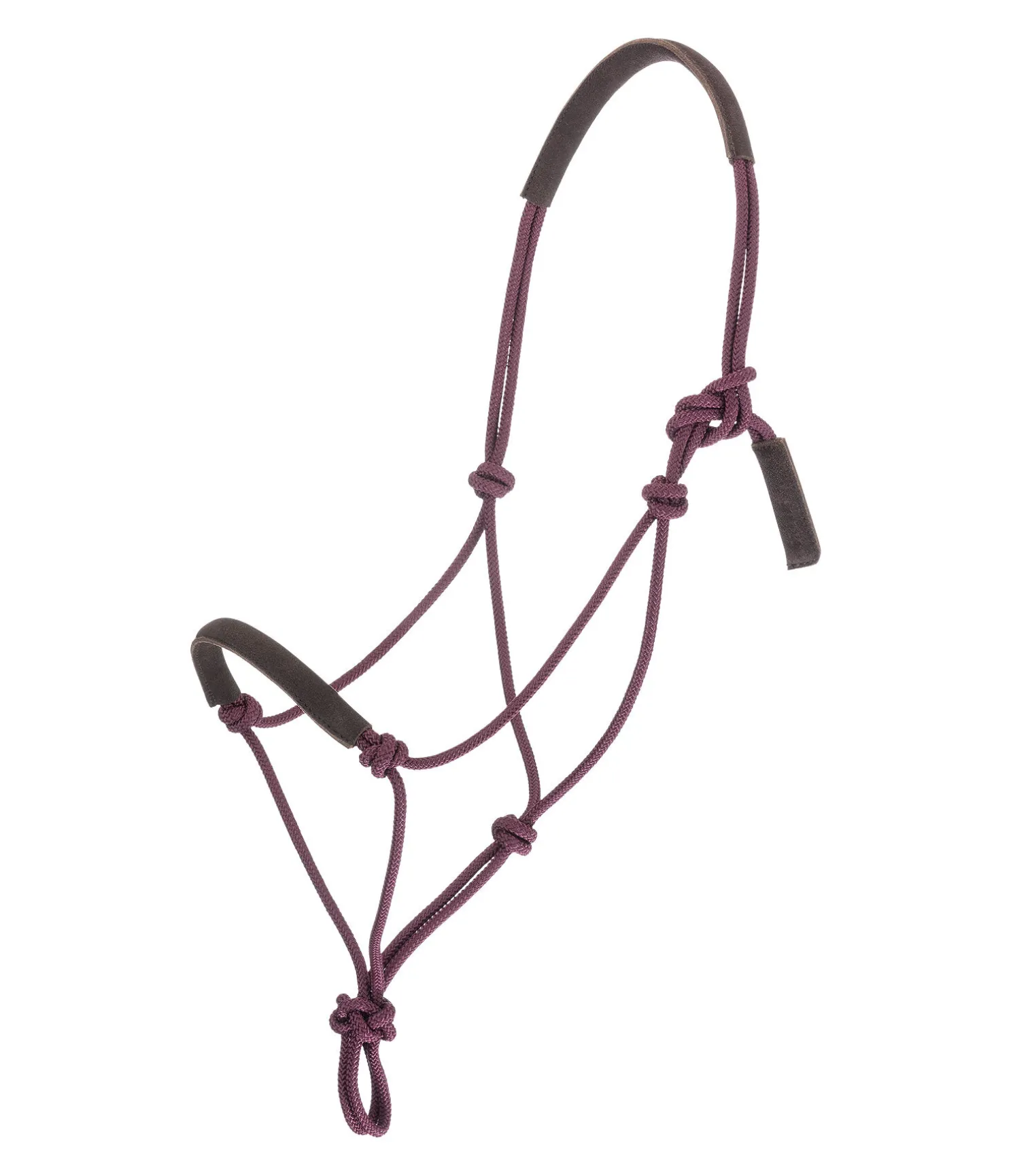 Licol à noeuds robuste. Doublure douce en daim sur la muserolle et la têtière pour plus de confort.