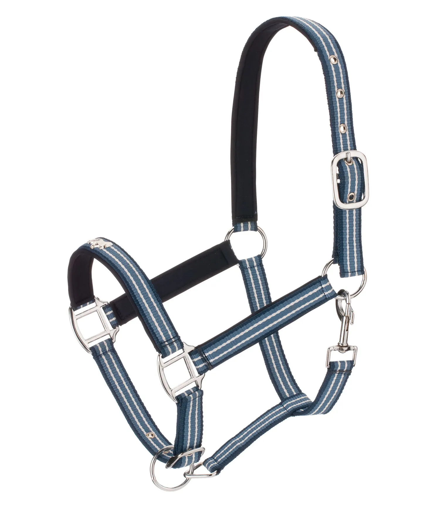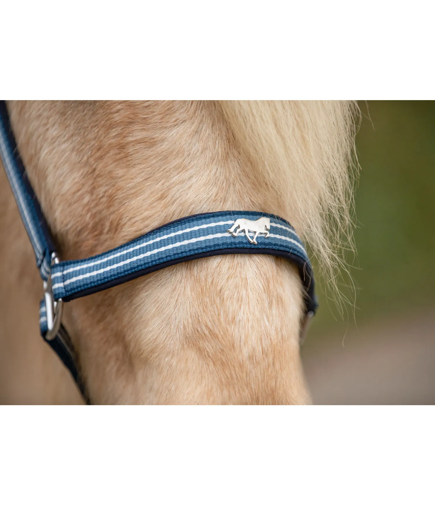 Licol au look sportif. Médaillon argenté en forme de cheval islandais sur la muserolle. Doublure moelleuse. Têtière et muserolle réglables.