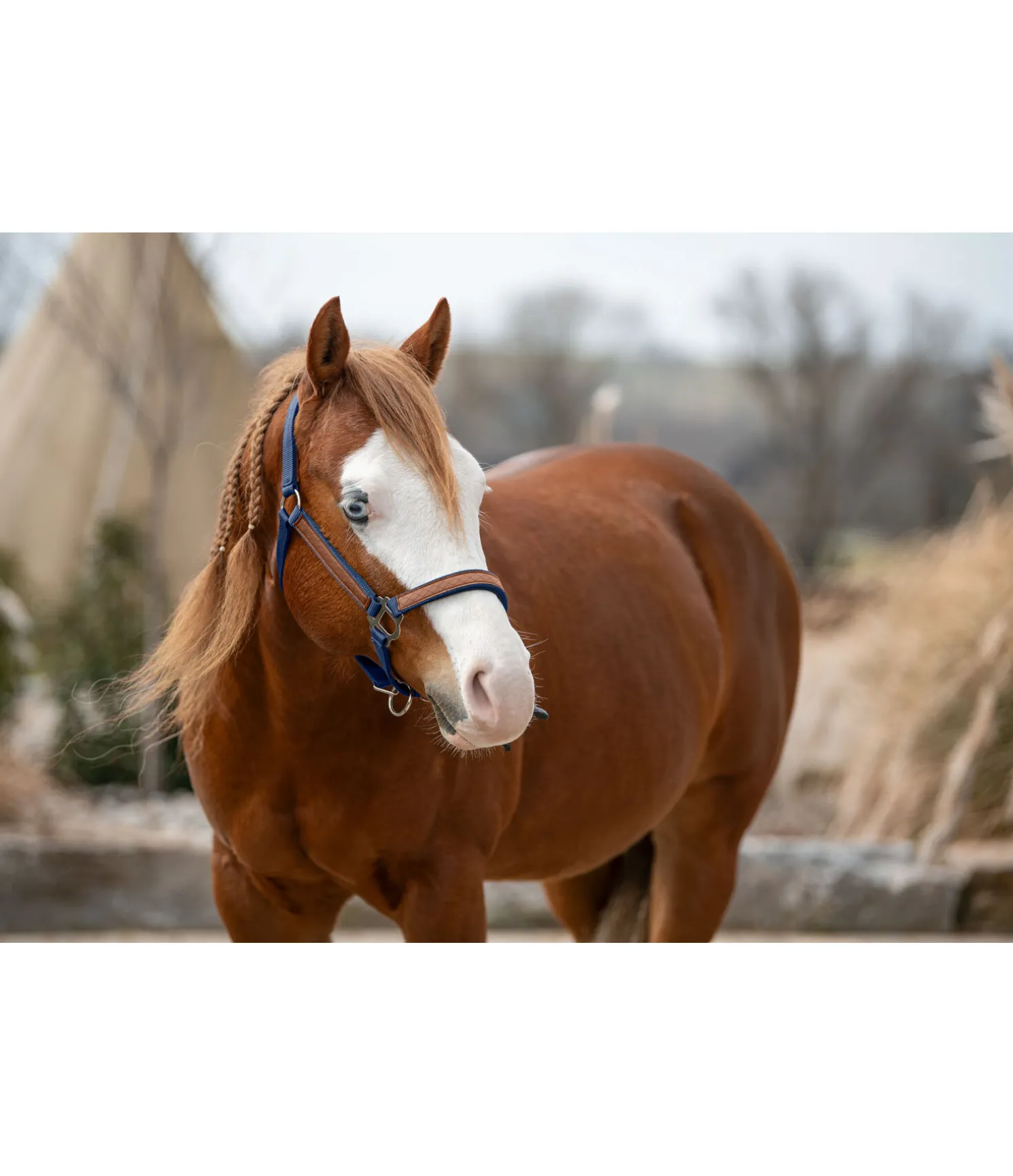 Licol chic dans un look western avec montants et muserolle ornés de suédine. Têtière, montants et muserolle avec doublure moelleuse en caoutchouc chloroprène. Têtière et muserolle réglables. Mousquetons clippers. Boucles argentées. Licol 50 % polypropylène, 50 % polyester, doublure 100 % caoutchouc chloroprène.