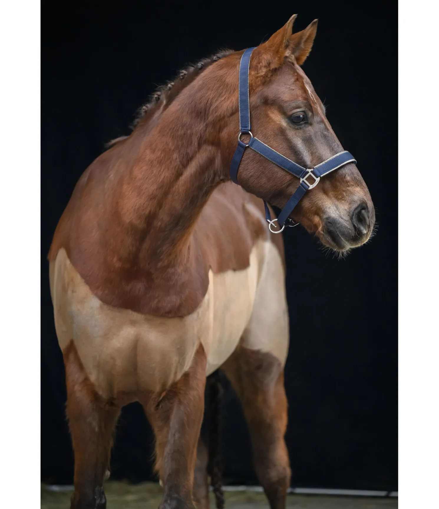 Licol chic avec passepoil scintillant et bouclerie de couleur assortie. Têtière, muserolle et montants avec doublure douce en caoutchouc chloroprène pour un confort maximal. Plaque métallique discrète avec logo gravé sur le montant gauche. Têtière et muserolle réglables. 100 % polypropylène.