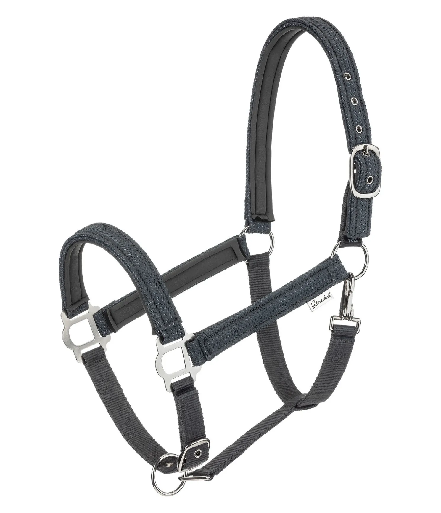 Licol doux et rembourré au look scintillant. Têtière, muserolle et montants avec rembourrage souple en caoutchouc chloroprène. Têtière et muserolle réglables. 100 % polypropylène, doublure 100 % polyester.