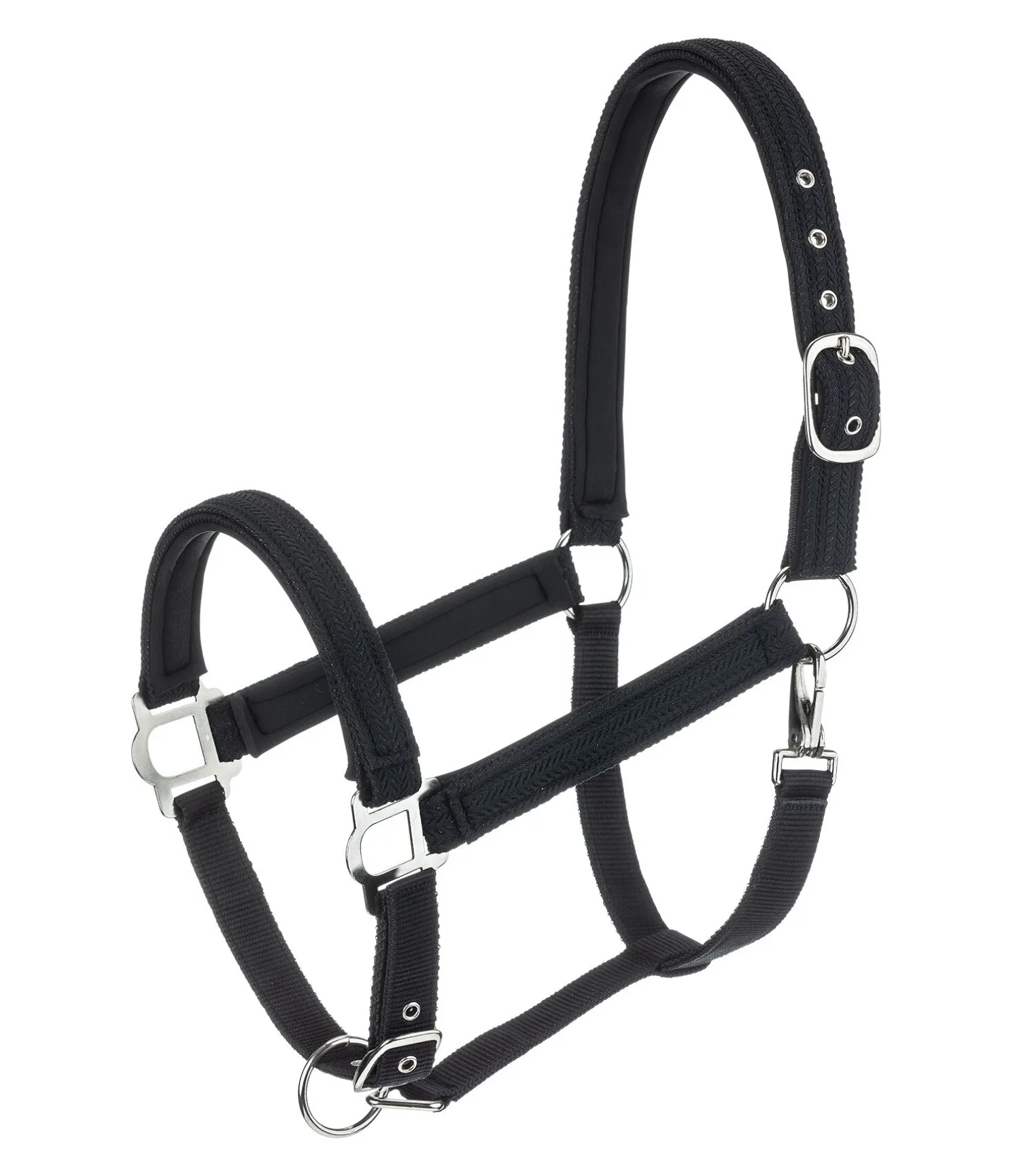 Licol doux et rembourré au look scintillant. Têtière, muserolle et montants avec rembourrage souple en caoutchouc chloroprène. Têtière et muserolle réglables. 100 % polypropylène, doublure 100 % polyester.