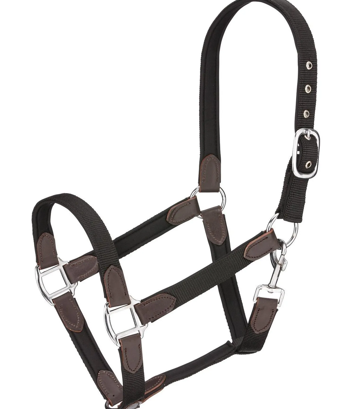 Licol de très grande qualité avec extrémités en cuir pour un look particulièrement soigné. Assorti à la longe Kate (440 543 et 440 686). Têtière et muserolle avec doublure. Têtière réglable facilement. Bouclerie argentée. Licol 100 % polypropylène, doublure 100 % caoutchouc-chloroprène.
