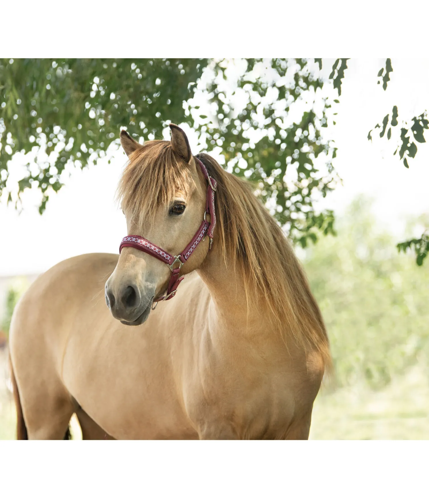 Licol avec motif nordique, pas uniquement réservé aux poneys islandais. Têtière, montants et muserolle avec doublure moelleuse. Têtière et muserolle réglables. Licol 100 % polypropylène, doublure 100 % polyester