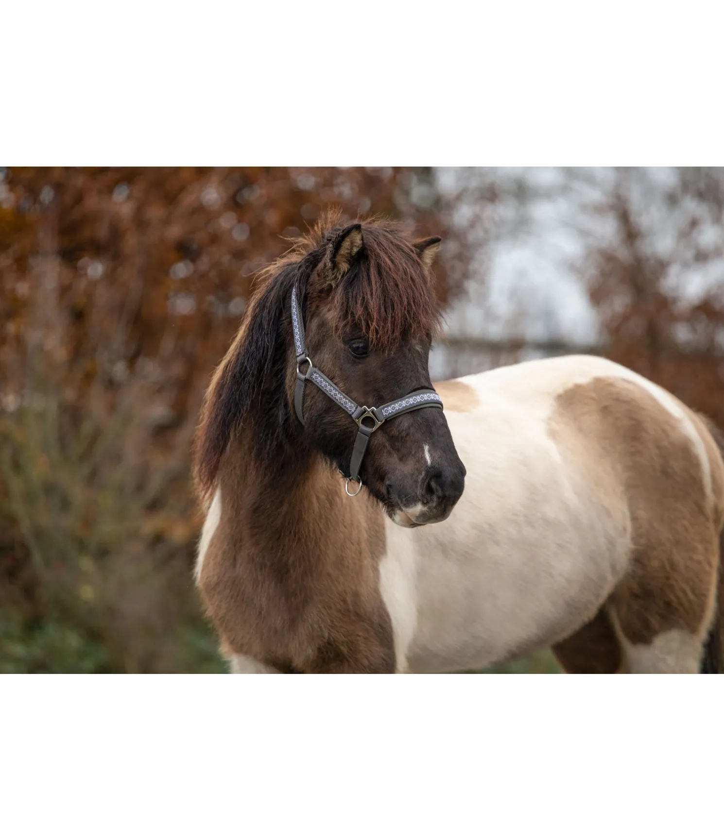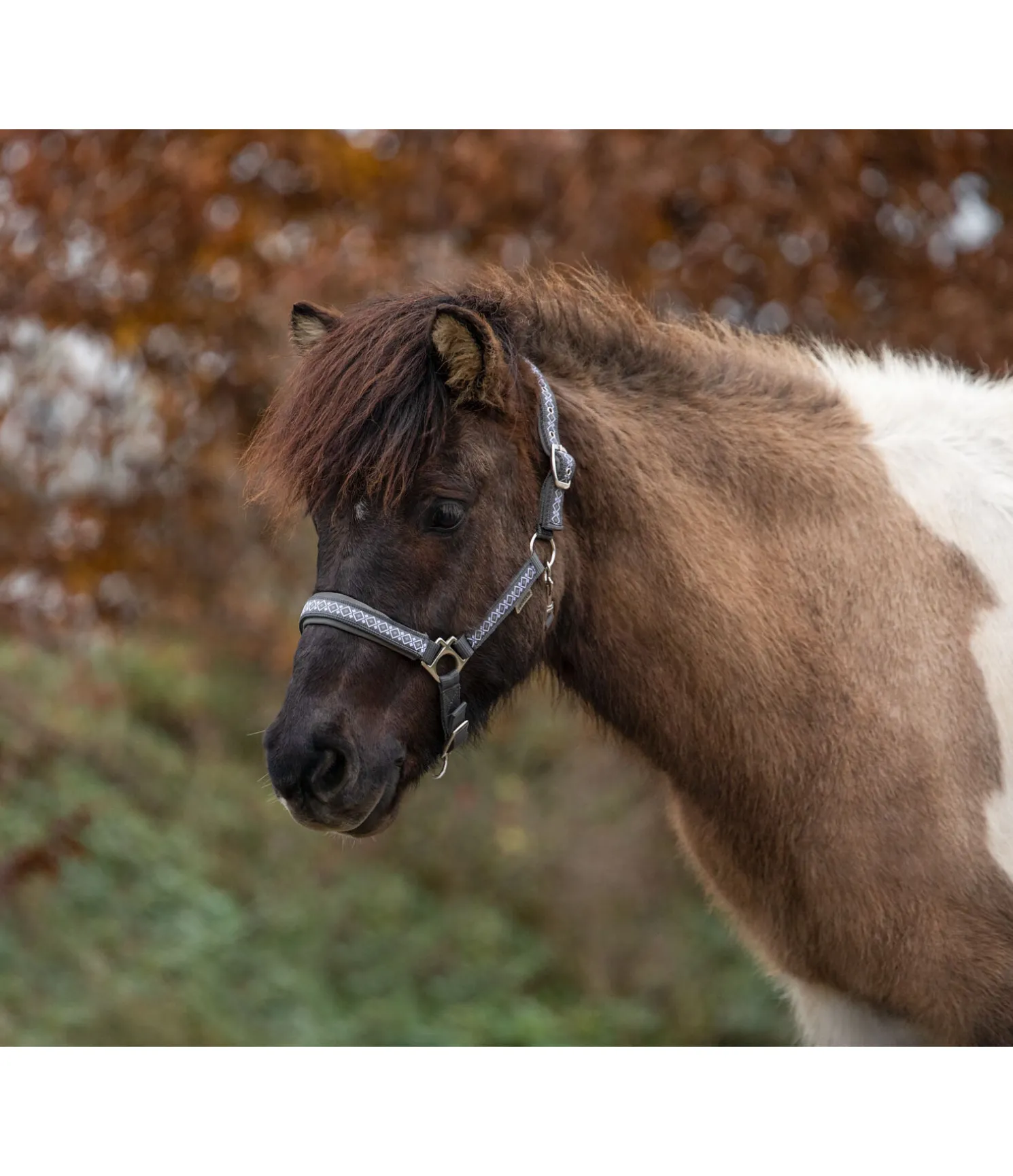 Licol avec motif nordique, pas uniquement réservé aux poneys islandais. Têtière, montants et muserolle avec doublure moelleuse. Têtière et muserolle réglables. Licol 100 % polypropylène, doublure 100 % polyester