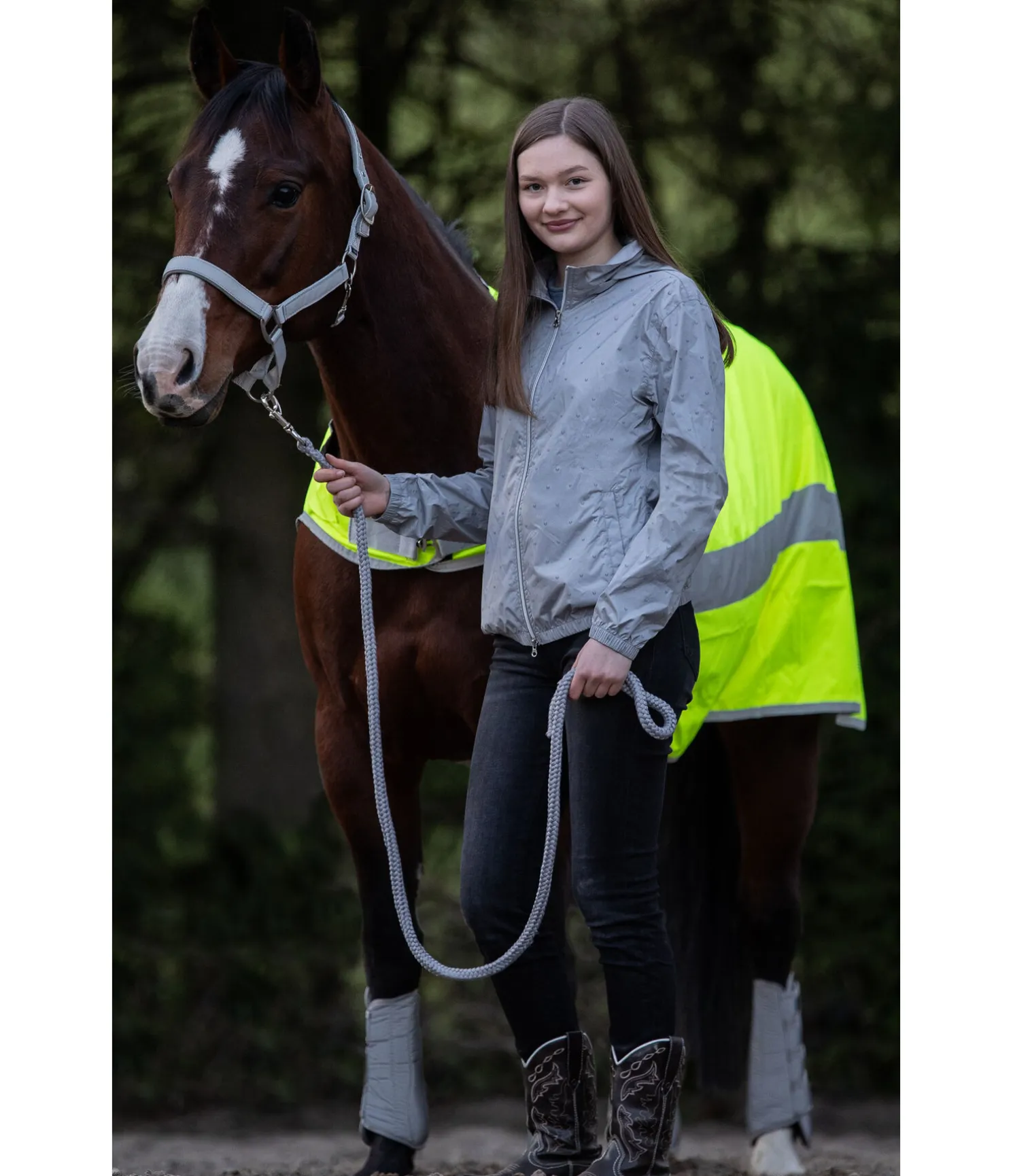 Licol en nylon avec doublure moelleuse et bandes réfléchissantes. Réglable à la têtière. Bouclerie argentée mat.
