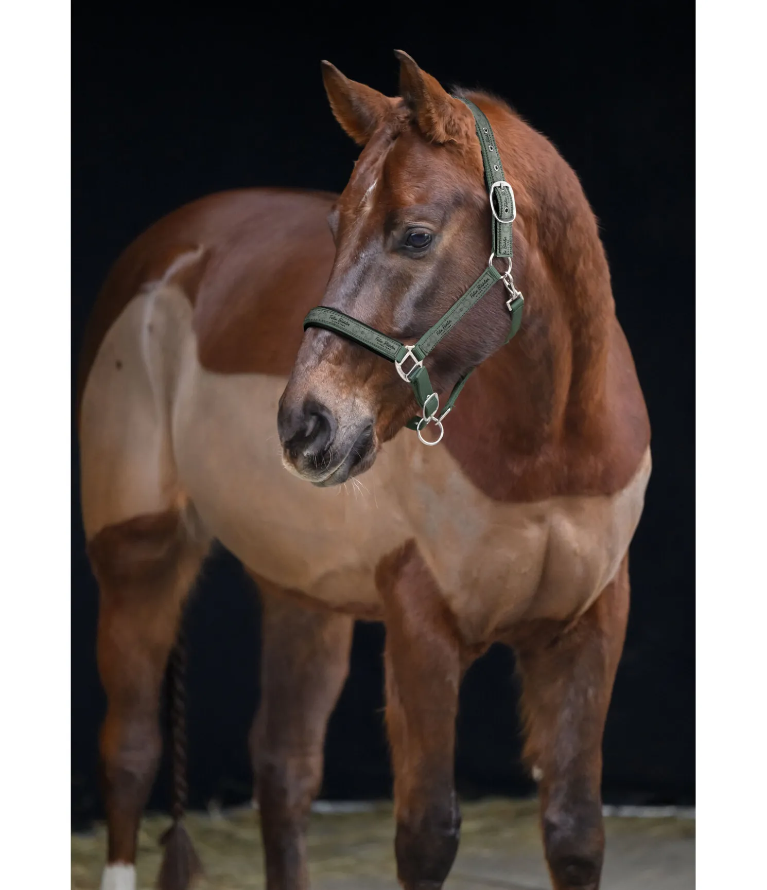 Licol chic avec motif mors de couleur assortie sur la têtière, la muserolle et les montants. Têtière et muserolle avec doublure douce en caoutchouc chloroprène pour un confort optimal. Têtière et muserolle facilement réglables avec bouclerie argentée. Licol 100 % polypropylène, doublure 100 % caoutchouc chloroprène.