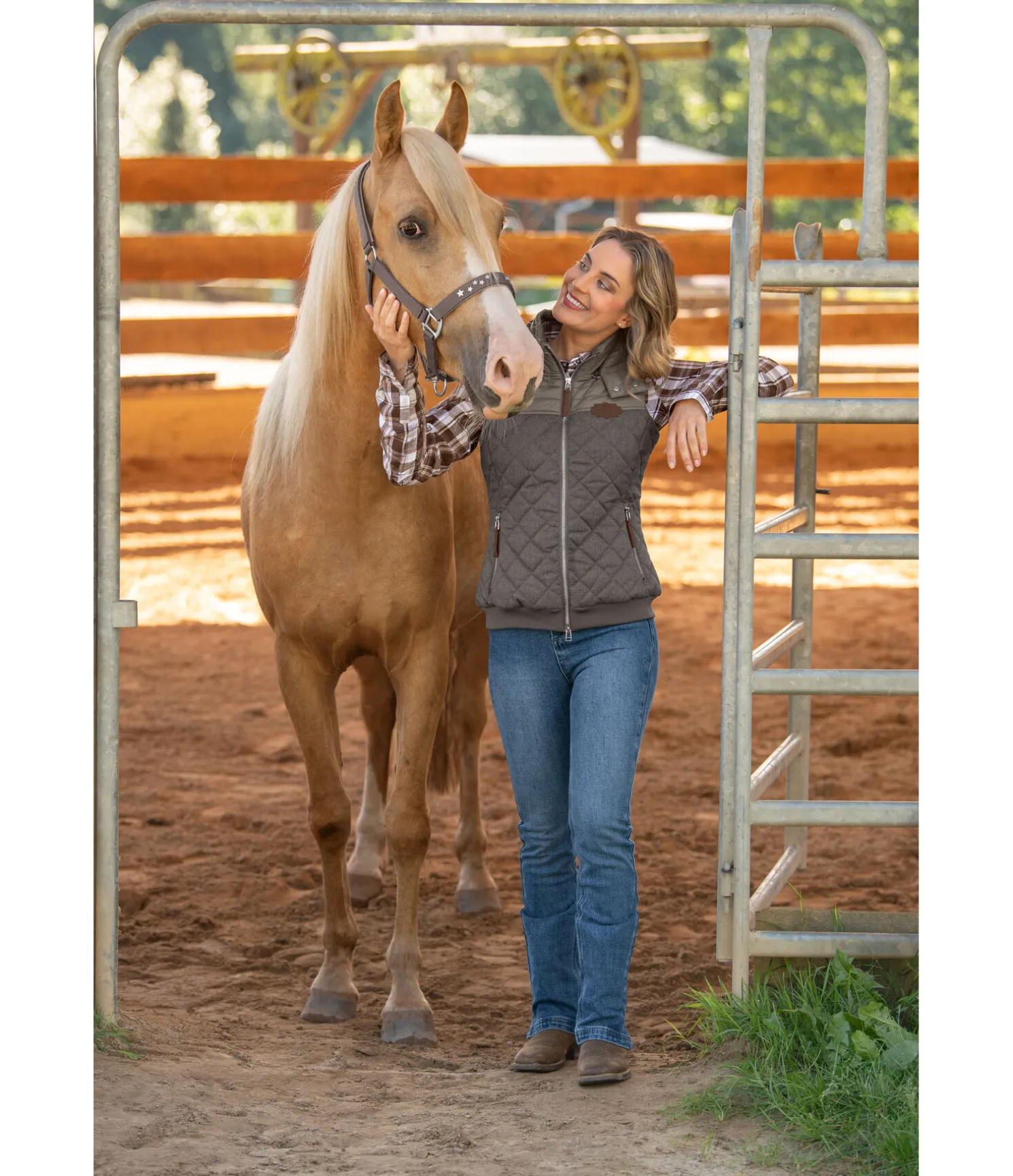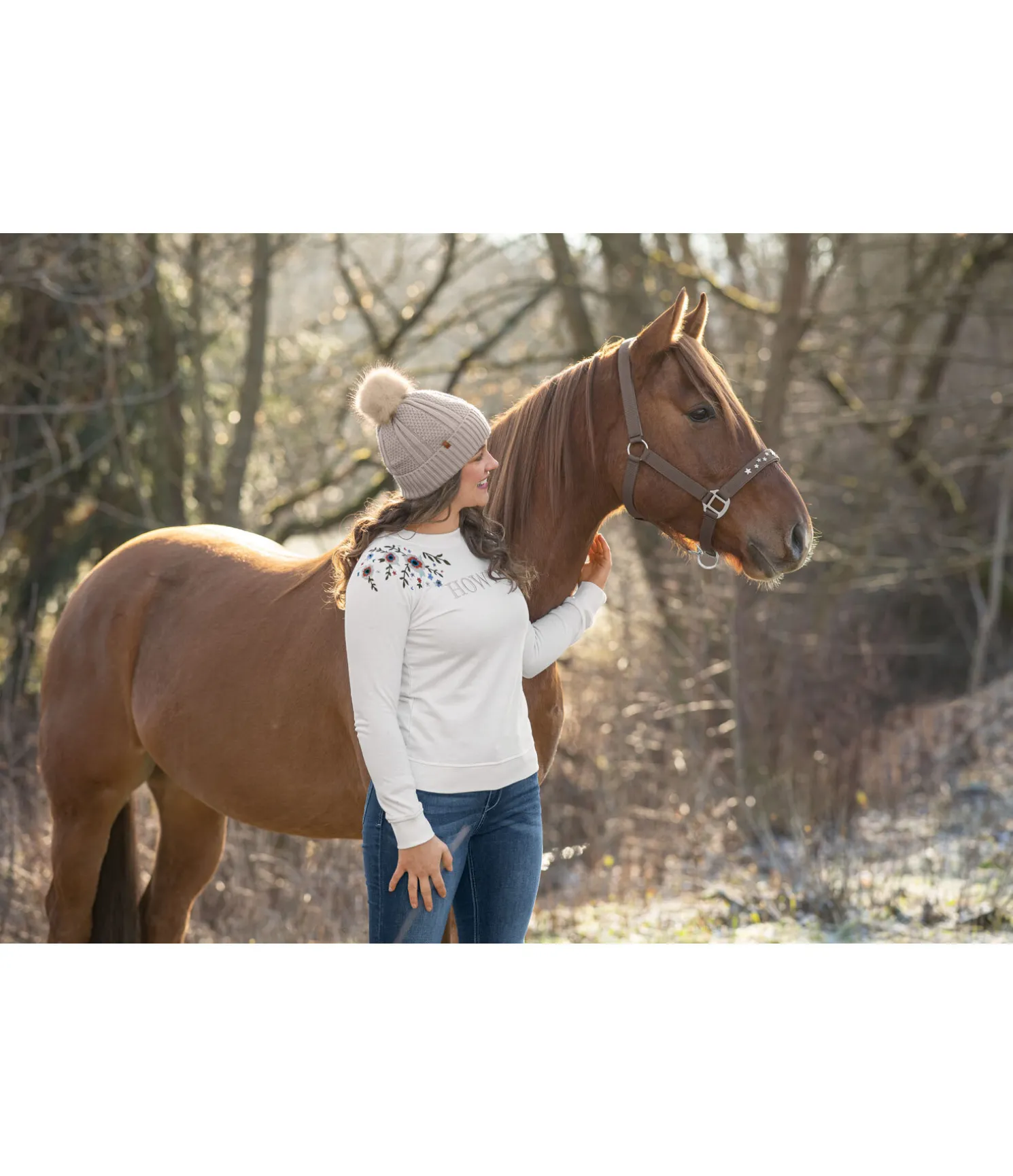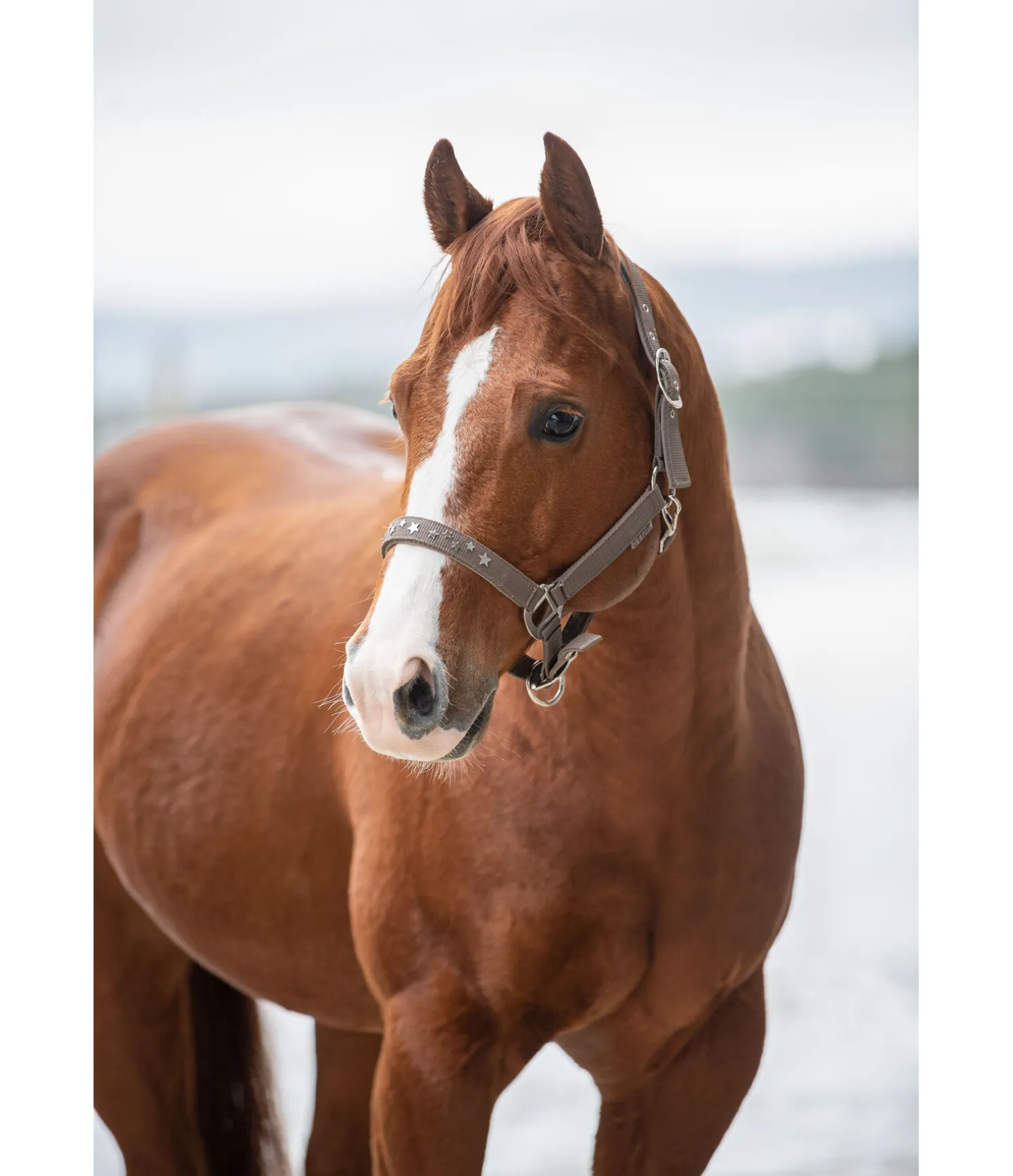 Licol orné de petites étoiles en métal sur la muserolle. Doublure douce en caoutchouc chloroprène sur la têtière et la muserolle. Têtière et muserolle réglables.