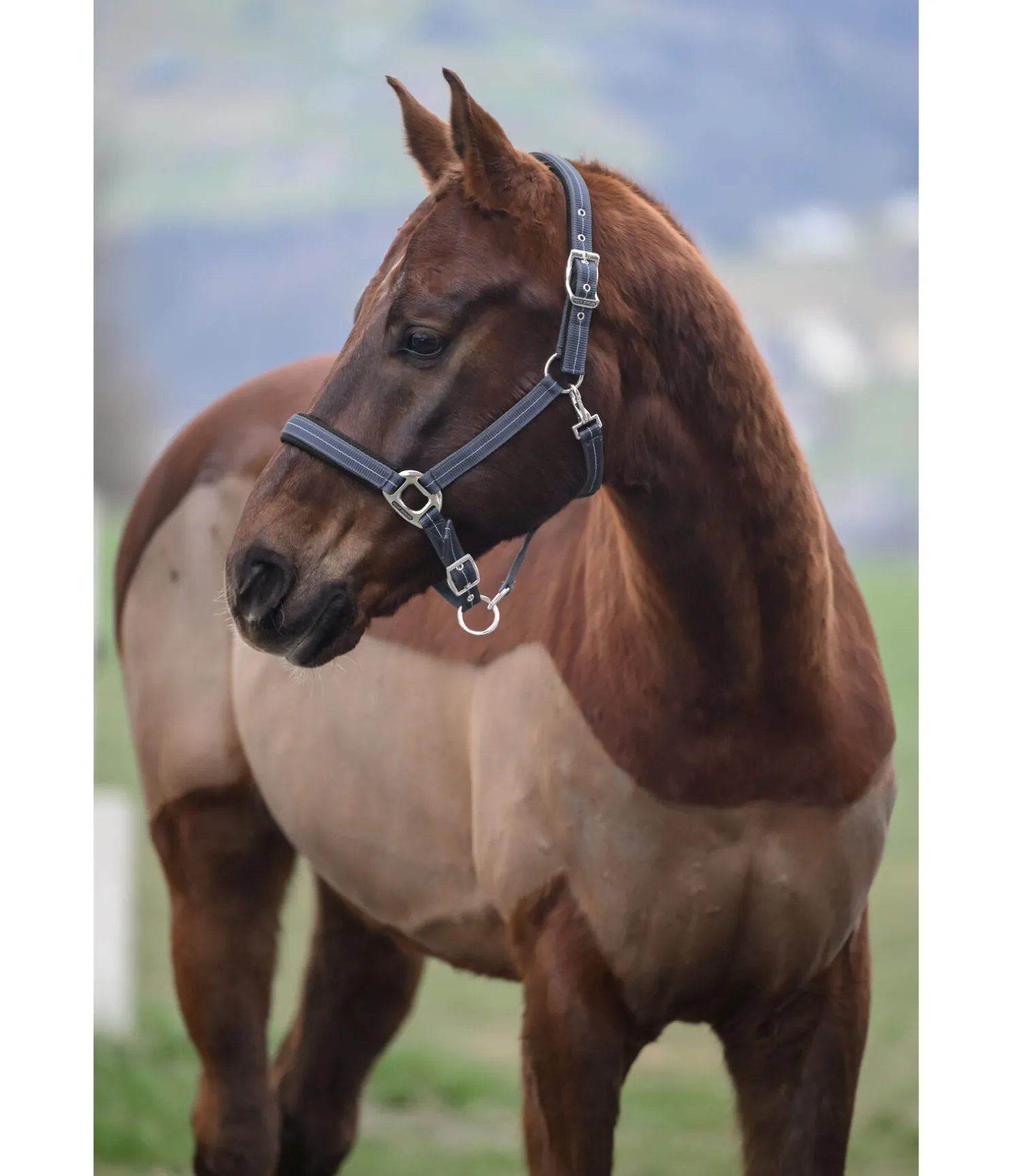 Licol rayé dans un look sportif avec doublure respirante en mesh sur la têtière et la muserolle. Muserolle et têtière réglables. Licol 100 % polypropylène.