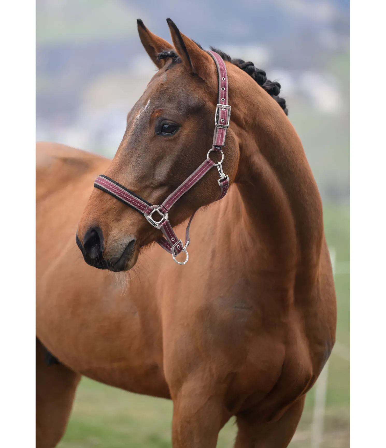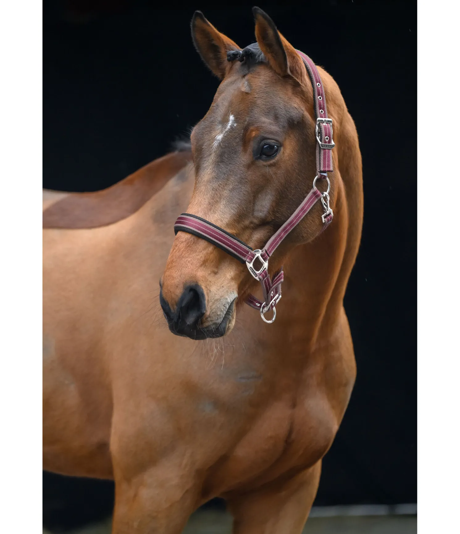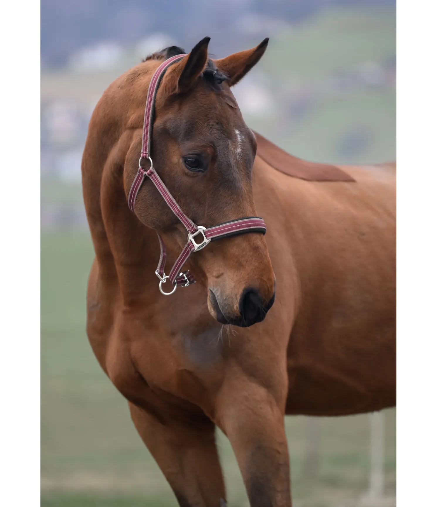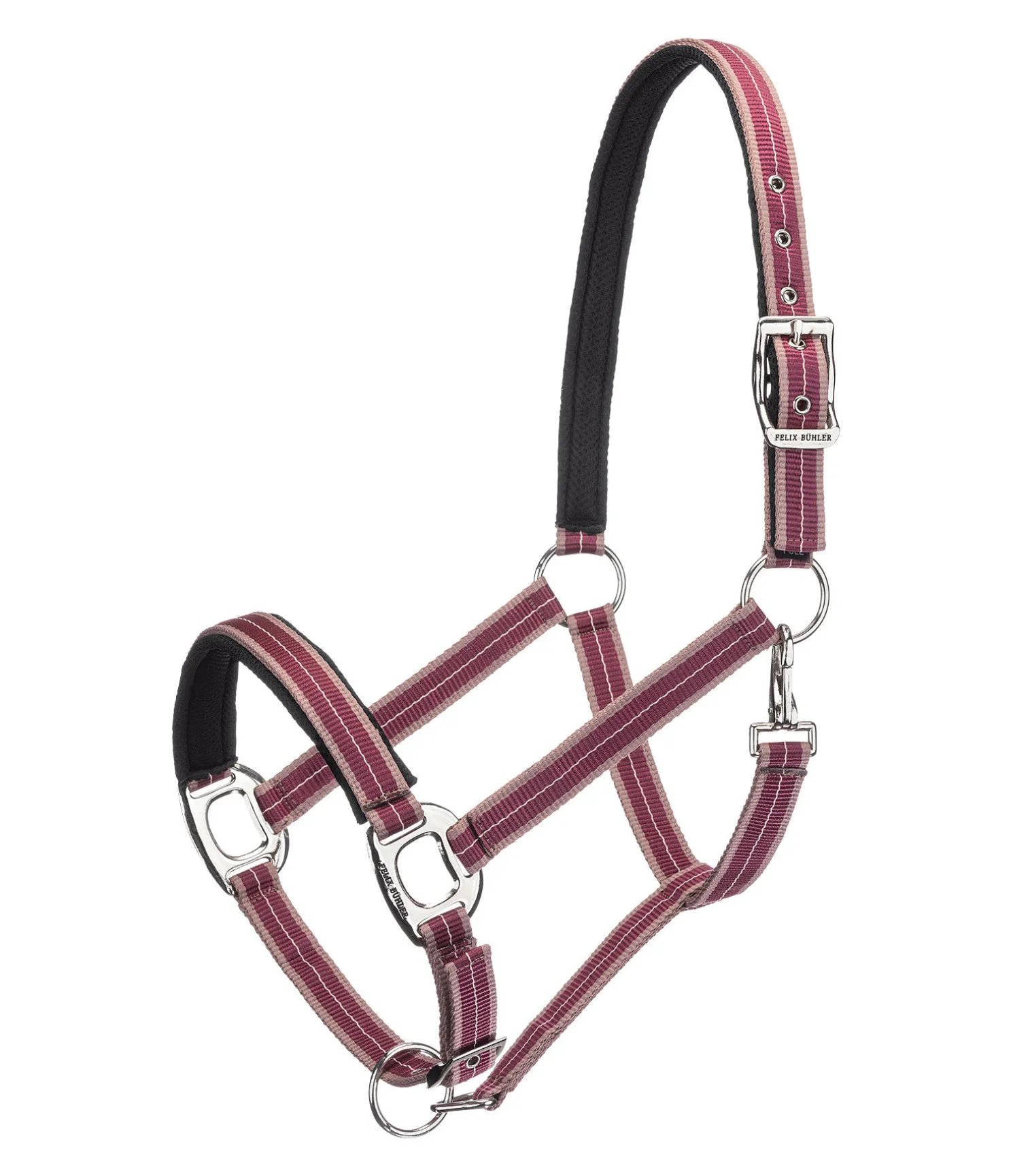 Licol rayé dans un look sportif avec doublure respirante en mesh sur la têtière et la muserolle. Muserolle et têtière réglables. Licol 100 % polypropylène.