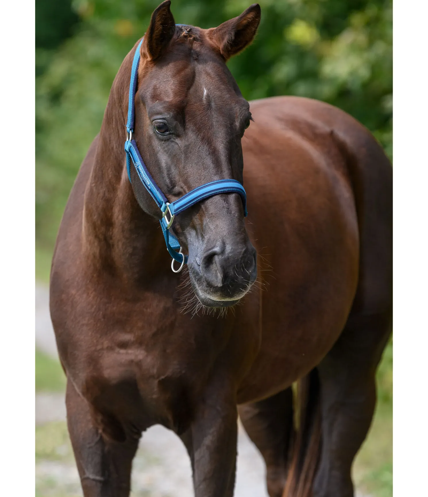 Licol simple bicolore. Têtière, montants et muserolle avec doublure douce en tissu éponge. Têtière et muserolle réglables. Bouclerie mate argentée. Licol 100 % polypropylène, doublure 100 % polyester.