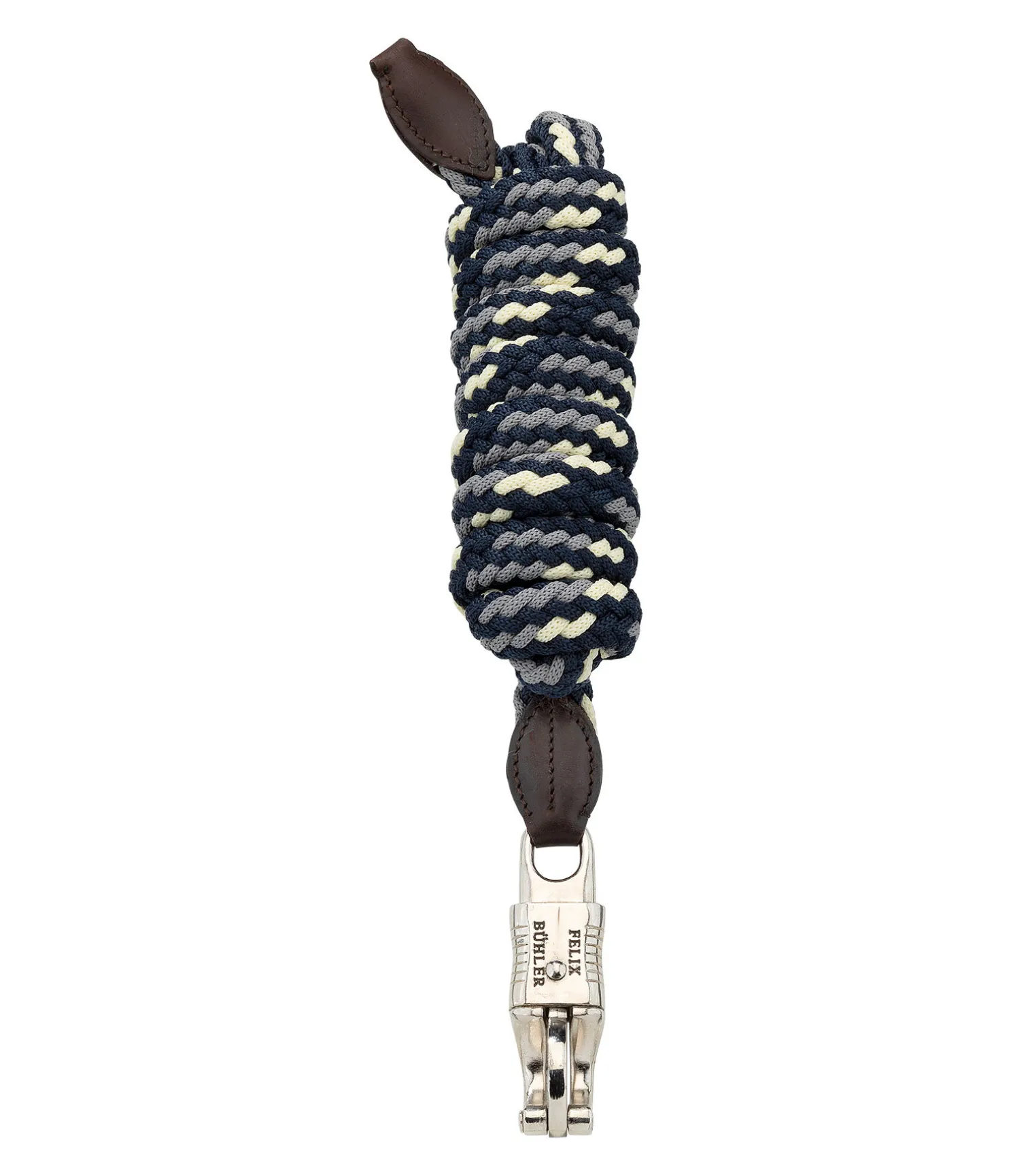 Longe tressée très résistante avec élégants embouts en cuir et mousqueton anti-panique. Assortie au licol 310040. Bouclerie argentée. 2 m. 100 % polypropylène.