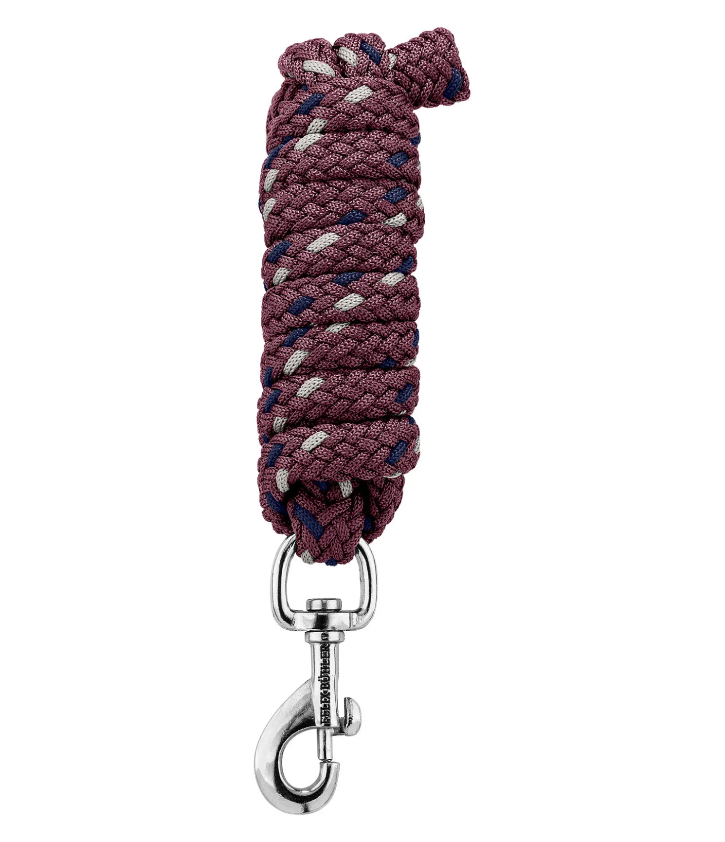 Longe tressée tricolore solide avec mousqueton. 2 m. 100 % polyester. Assortie au licol 310057.