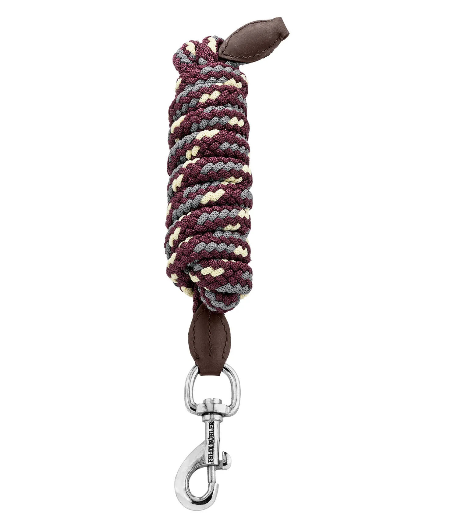 Longe tressée ronde très résistante avec élégants embouts en cuir et mousqueton. Assortie au licol 310040. Bouclerie argentée. 2 m. 100 % polypropylène.