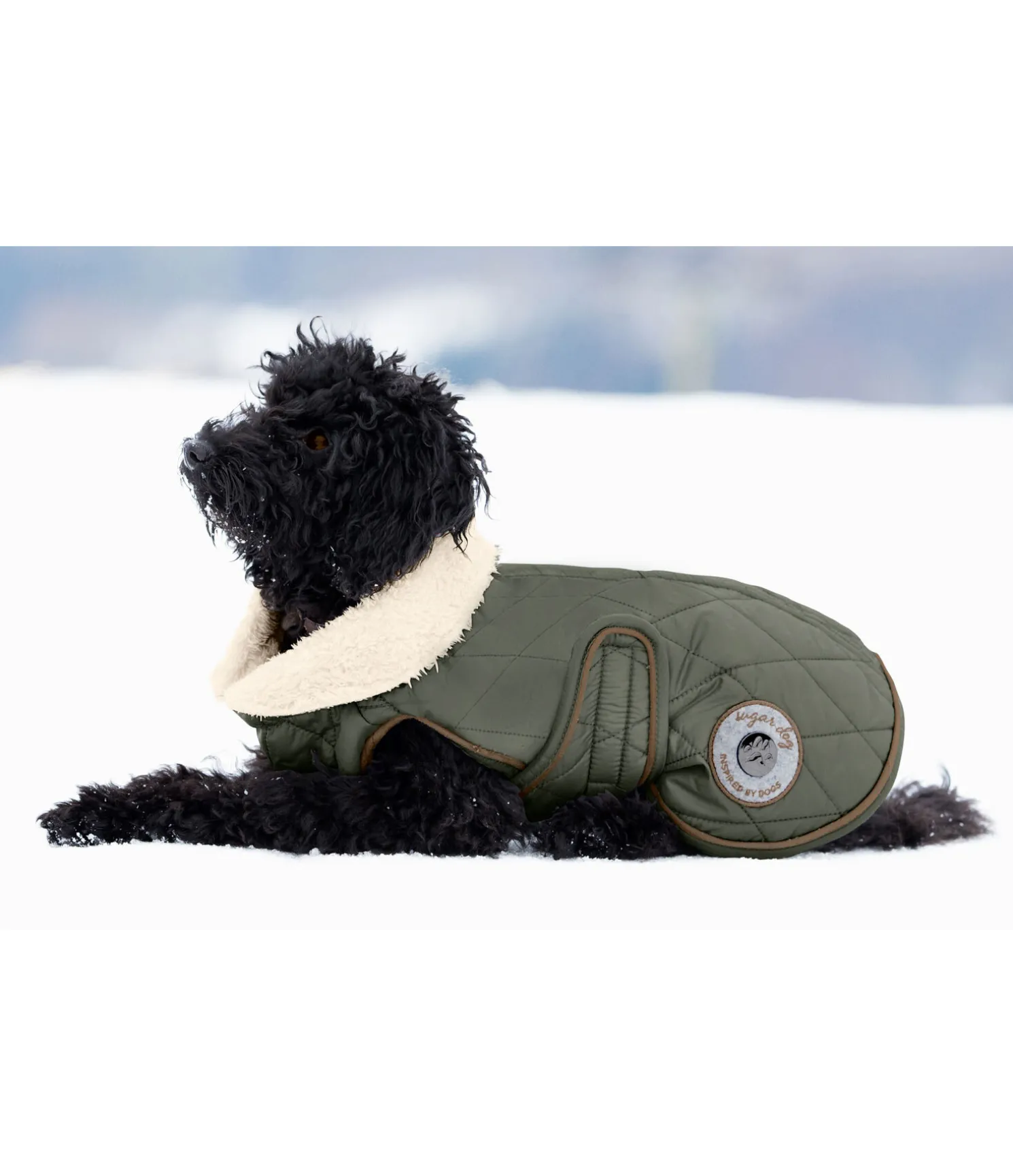 Manteau matelassé tendance avec doublure en polaire Teddy douce et chaude avec un col et garnissage léger 160 g. Tour de cou réglable. Fermeture par patte auto-agrippante au poitrail et sous le ventre pour une mise en place facile. Avec ouverture dorsale pour passer la laisse. Jolis éléments en synthétique et coussinet en métal sur un badge en feutre. Extérieur 100 % nylon (210 deniers), doublure 100 % polyester.