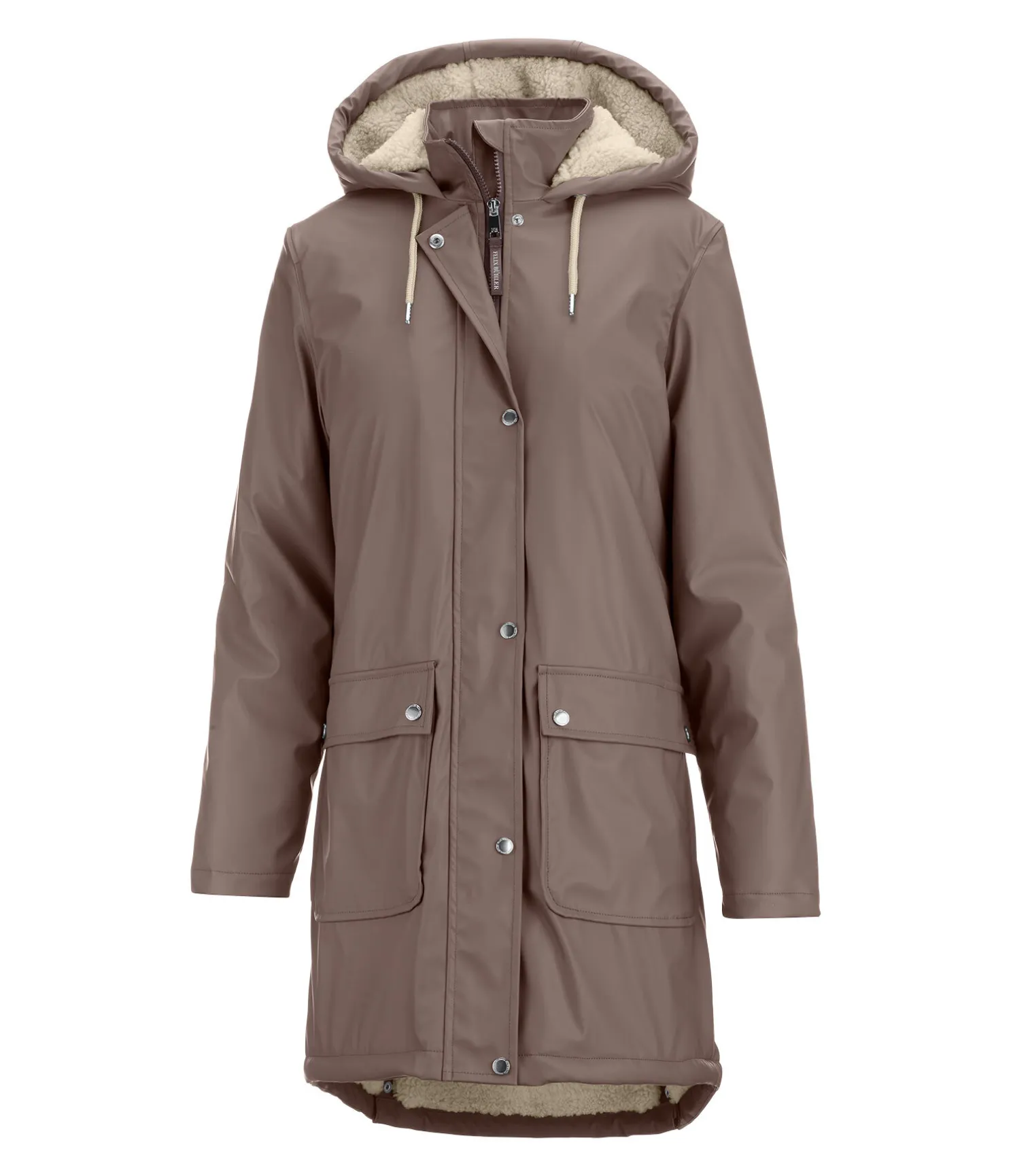 Manteau d’équitation à capuche tendance avec doublure chaude et douce en fourrure Teddy. Matière imperméable (8.000 mm) et coupe-vent. Convient aussi pour faire du vélo ou promener le chien. Fermeture à glissière double sens dissimulée avec protège-menton. 1 poche intérieure zippée. 2 poches avant à rabat avec boutons-pression. Capuche ajustable doublée en fourrure Teddy. Bouton-pression pour fixer la capuche dans le dos. Coupe plus longue à l’arrière. 2 fentes cavalières avec boutons-pression. Imprimé Felix Bühler sur la manche. Matière extérieure 100 % polyuréthane, matière intérieure 100 % polyester.