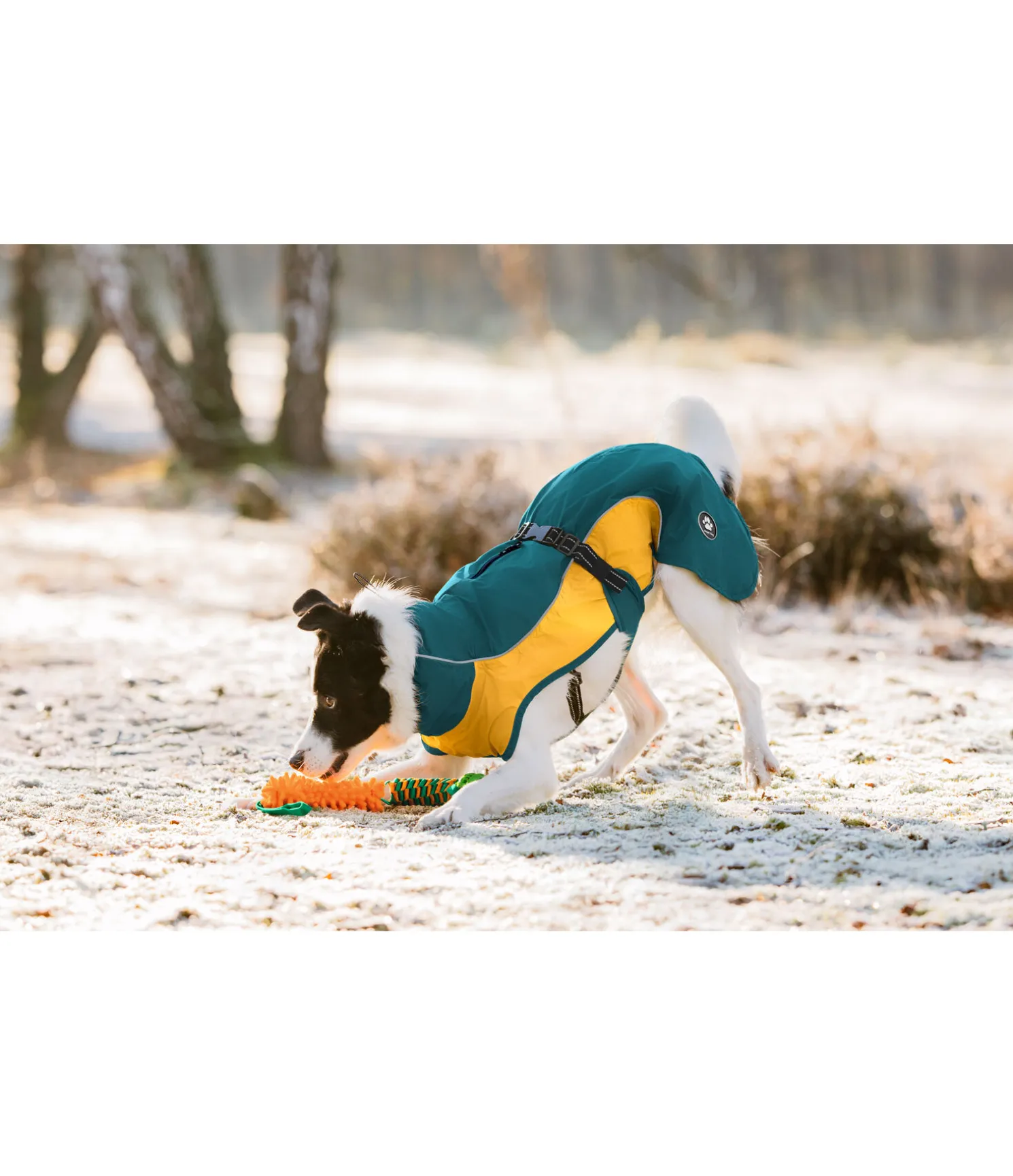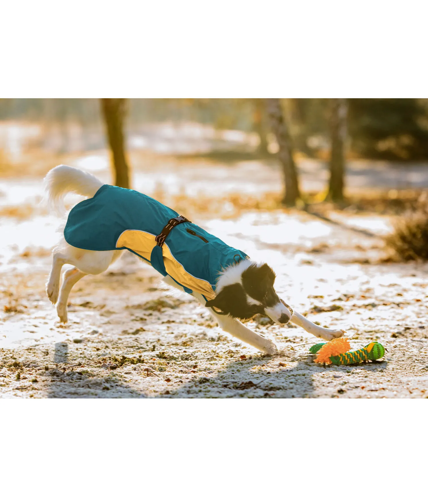 Notre modèle de manteau de pluie le plus léger (imperméabilité 3.000 m, respirabilité 3.000 g/m2/24h, coutures thermosoudées) idéal pour la mi-saison ou les orages estivaux ! Ce manteau bicolore dispose d’une doublure en mesh et de nombreux éléments réfléchissants tels que le badge logo. La coupe Highneck garantit une protection optimale et le cordon de serrage facilite le réglage. Sangle ventrale avec fermeture à clip sécurisée et réglable sans palier pour un ajustement optimal à la morphologie du chien. Courte fermeture à glissière imperméable dans le dos pour fixer la laisse au harnais. Le manteau dispose aussi de courroies de cuisse pour empêcher le manteau de se soulever ou de glisser. 100 % polyester.