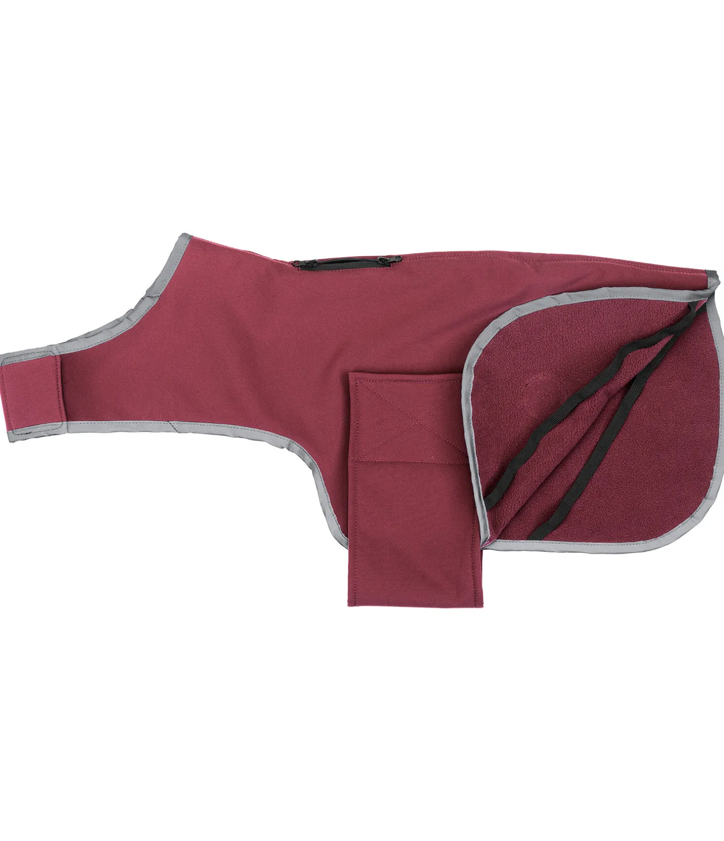Manteau particulièrement léger, déperlant et respirant (100 deniers) conçu dans une matière softshell et coupe-vent. Doublure polaire molletonnée pour une température agréable. Facile à fermer grâce à une patte auto-agrippante au poitrail et au ventre. La coupe sportive avec de larges découpes aux épaules garantie une liberté de mouvement optimale. Également adapté pour du dressage ou des activités d’endurance. Passepoil réfléchissant sur le pourtour pour plus de sécurité sur la route. Badge logo également réfléchissant. Sans col gênant. Avec passage de harnais étanche et courroies de cuisses élastiques. 100 % polyester.