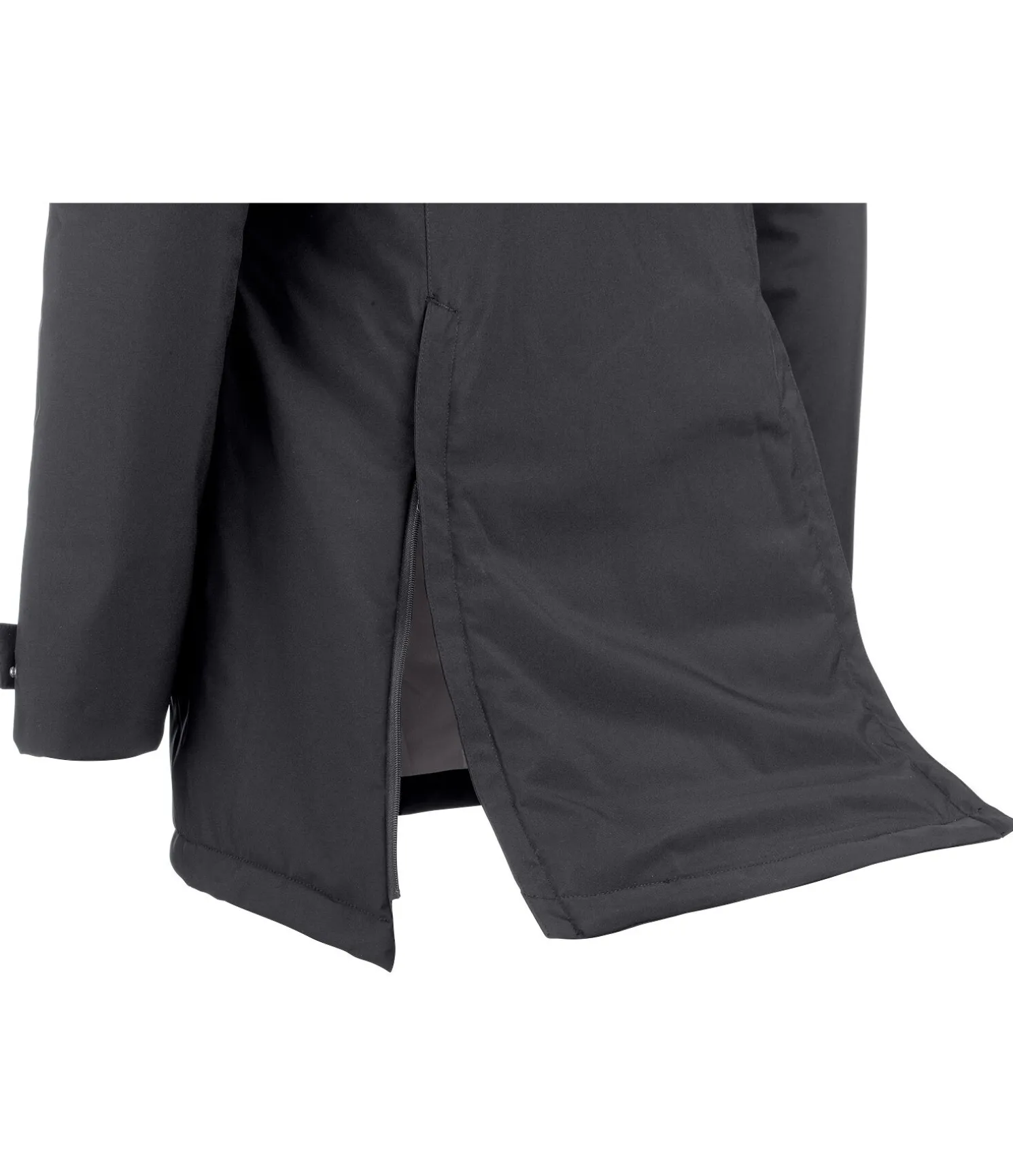 Manteau d’équitation technique avec garnissage chaud en imitation duvet et capuche. Imperméable (10.000 mm), coupe-vent et respirant. Fermeture à glissière double sens avec sous-patte, 2 poches zippées devant, 1 poche intérieure zippée, bas des manches réglables, col haut avec capuche rembourrée réglable. 2 fentes cavalières zippées à l’arrière. Badge Felix Bühler sur la manche et imprimé réfléchissant Felix Bühler sur le col. 100 % polyester.