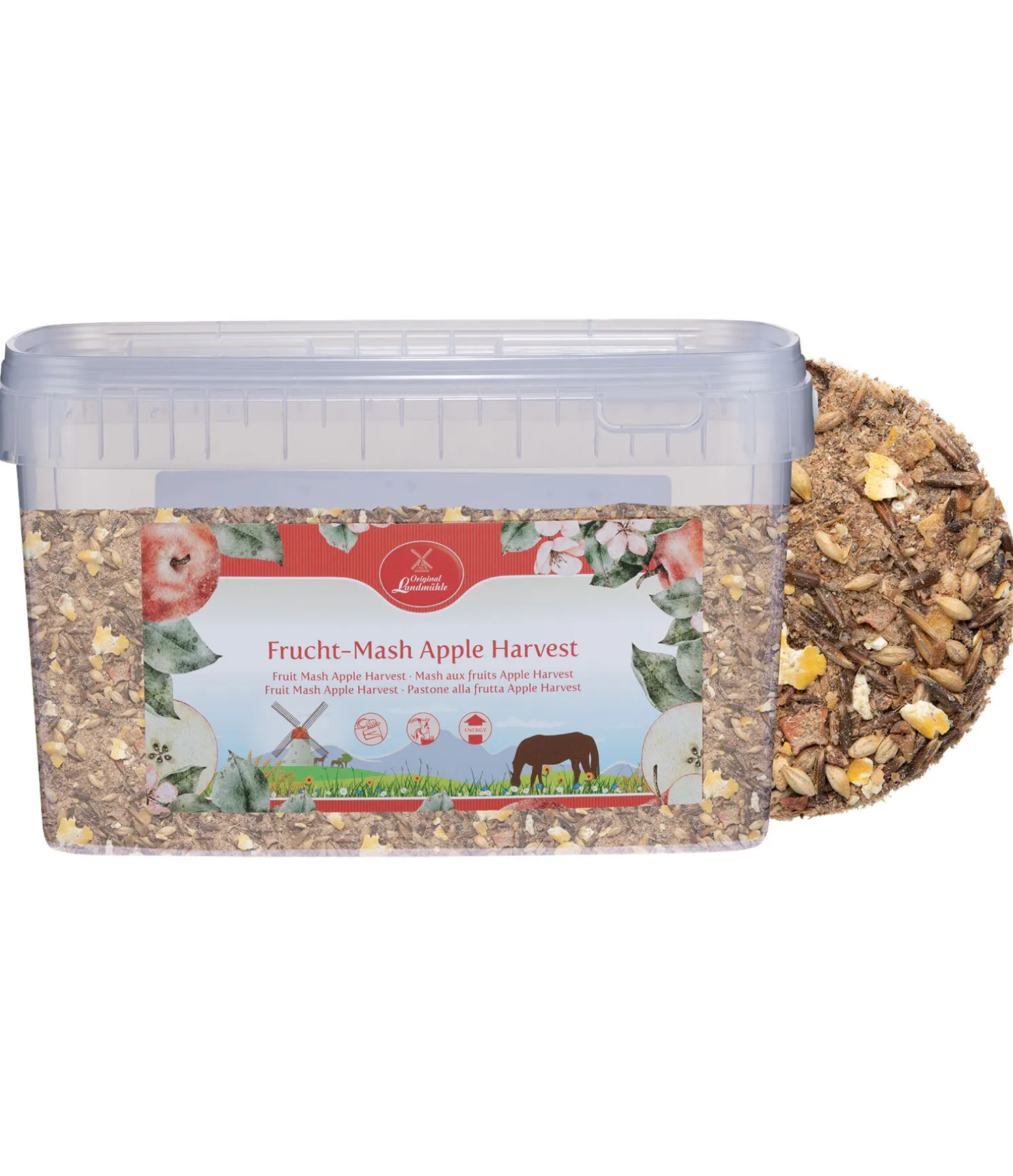 Face au succès de nos chips aux fruits secs (réf. : 490899, 490852, 490853), nous avons développé une large gamme de mashs aux fruits secs. L’avoine noire apporte énergie et saveur au mash aux fruits. Particulièrement adapté pour l’alimentation des chevaux difficiles ou ayant des problèmes d’alimentation. La marc de pomme, le tourteau de lin et la levure de bière peuvent aider à digérer et avoir un effet bénéfique sur la peau et la robe. Le mash Pomme Harvest contient un mélange varié riche en vitamines et composé de chips de pommes, de carottes, de bananes et de betteraves rouges séchées.