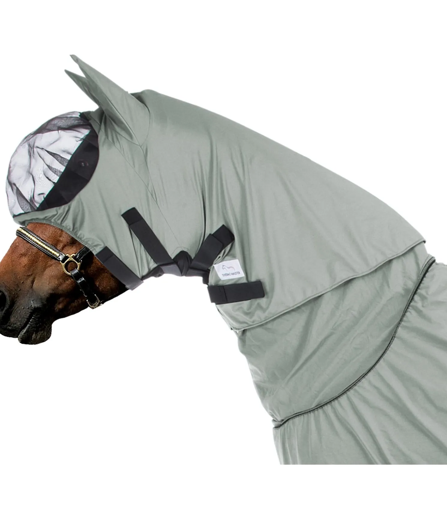 Pour compléter la couverture anti-eczéma THERMO MASTER 421 886. Protège les parties délicates de la tête et les yeux. Fixation facile grâce aux bandes auto-agrippantes au niveau des ganaches. Peut être fixé à la couverture anti-eczéma grâce à des fermetures à clip dans la zone du cou. Résistant aux UV. 100 % polyesterer